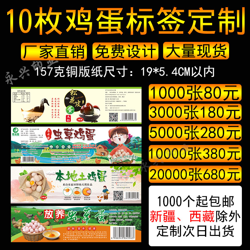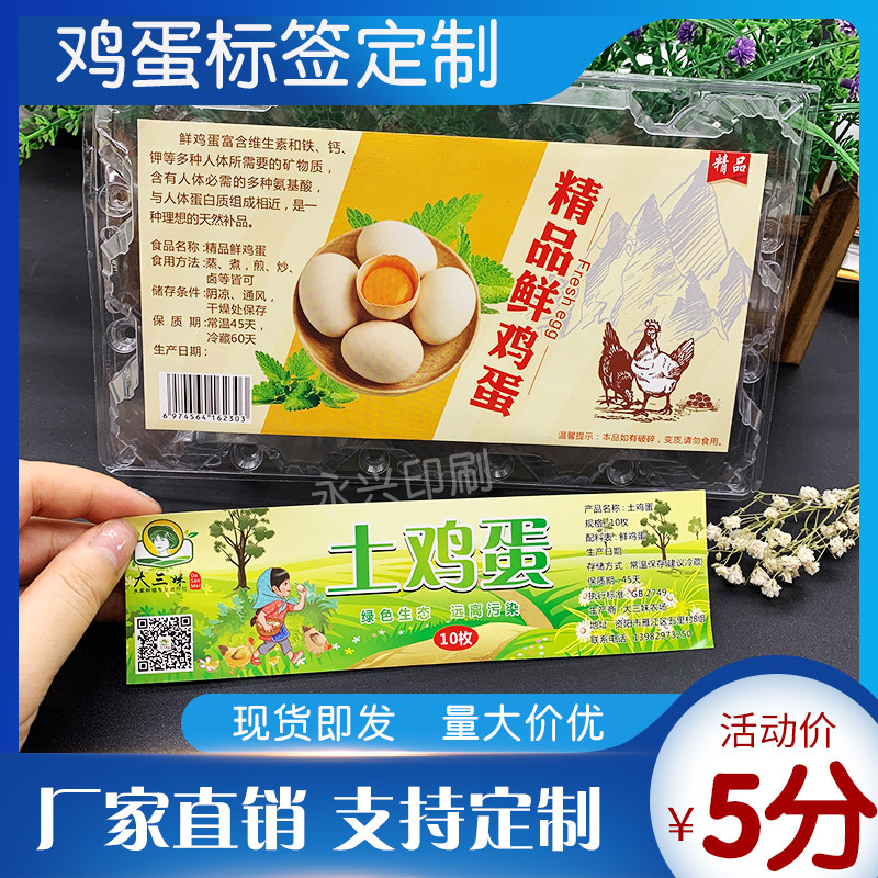 富硒鸡蛋标签贴纸定制做虫草土鸡蛋托贴纸绿壳鸡蛋盒A1不干胶现货