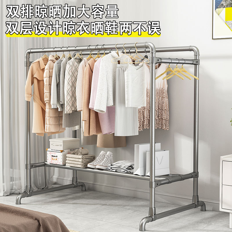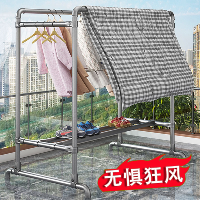 钢管晾衣架落地户外加厚家用室内阳台挂衣服简易晒被凉衣单杆水管