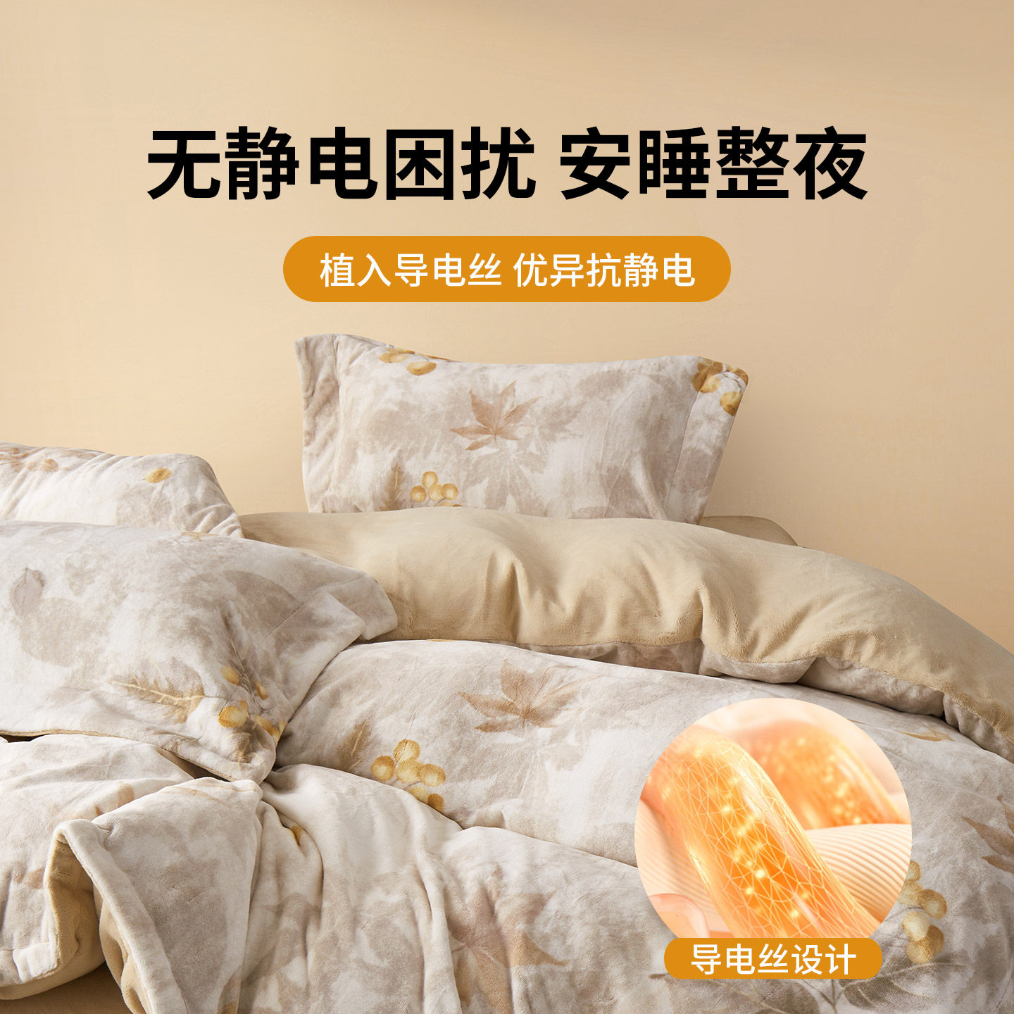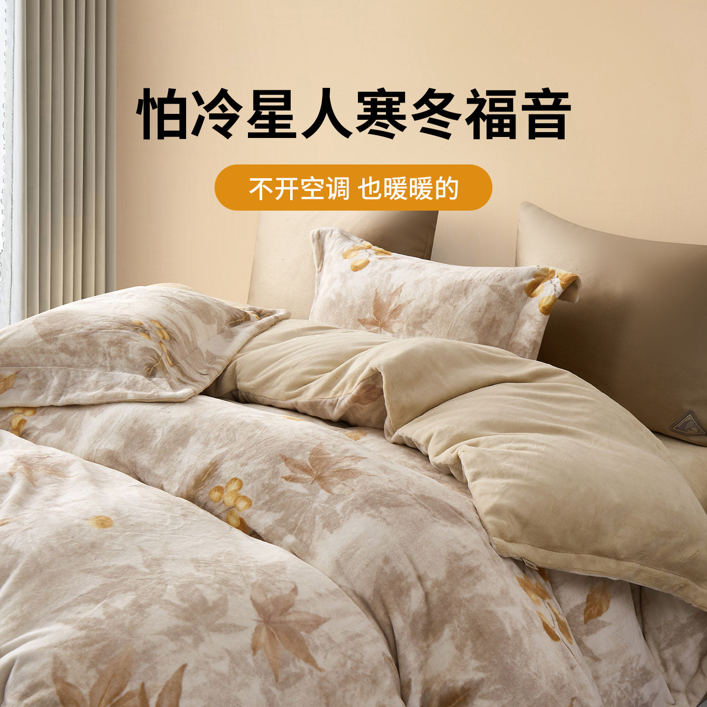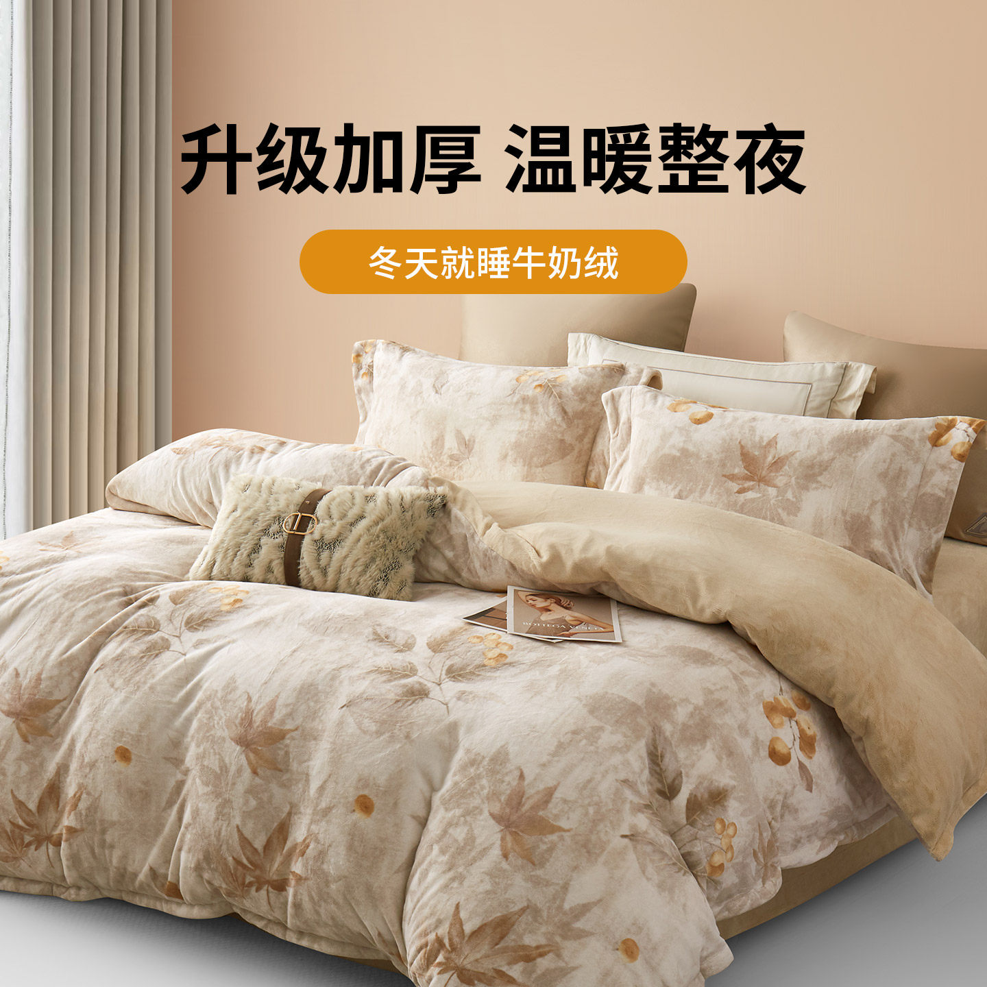 富丽真金牛奶绒四件套冬季加厚法兰绒床品珊瑚绒加绒保暖床单被套