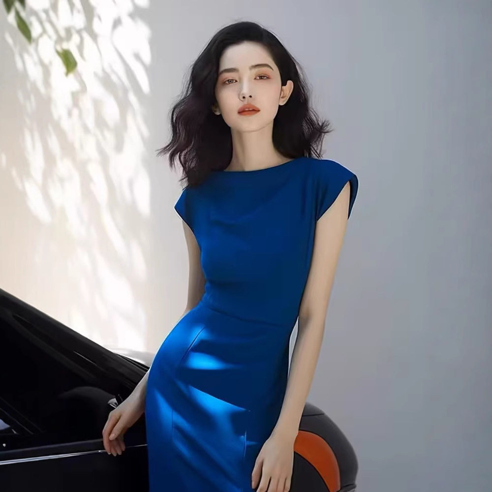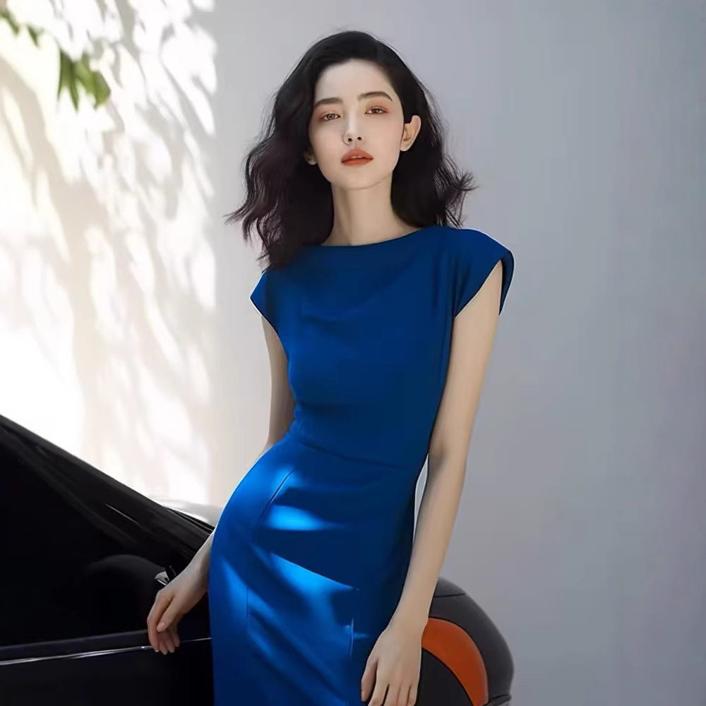 优雅气质名媛女神范御姐风礼服裙收腰短袖轻熟高端精致连衣裙女夏