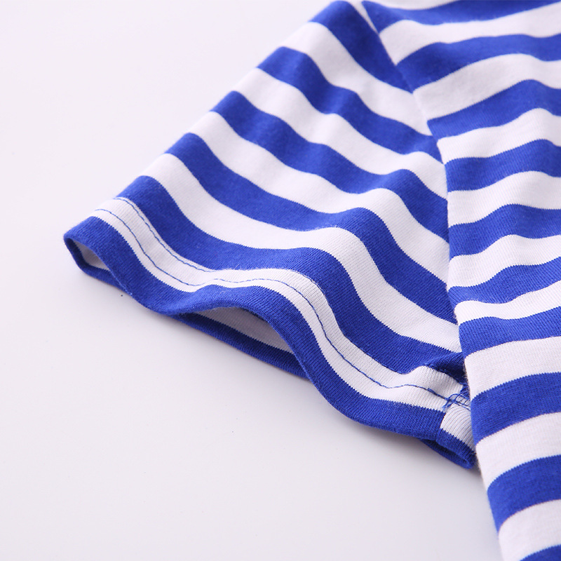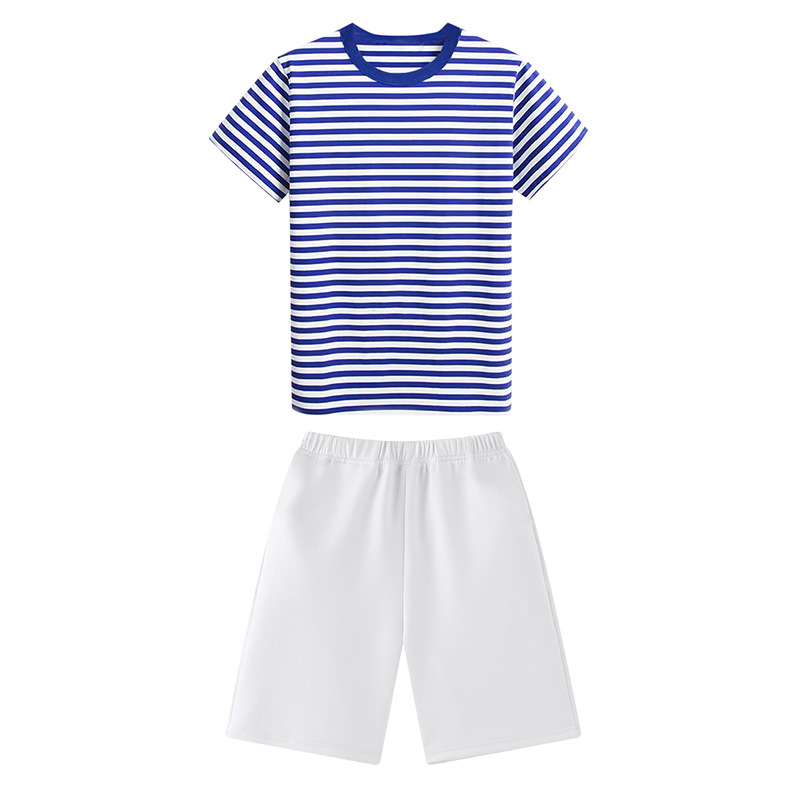 男童女童海军衫套装运动会儿童表演服蓝白条短袖t恤海魂衫亲子装