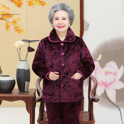 胖婆婆超厚棉衣棉裤两件套睡衣女