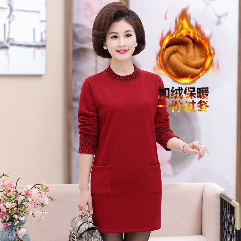 2023秋冬中老年女装中长款加绒毛衣打底衫中年妈妈装衫加厚连衣裙
