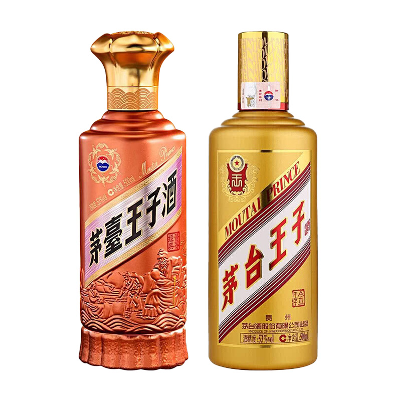 茅台王子酒金王子500ml*1+新酱香经典500ml*1组合53度酱香型白酒k