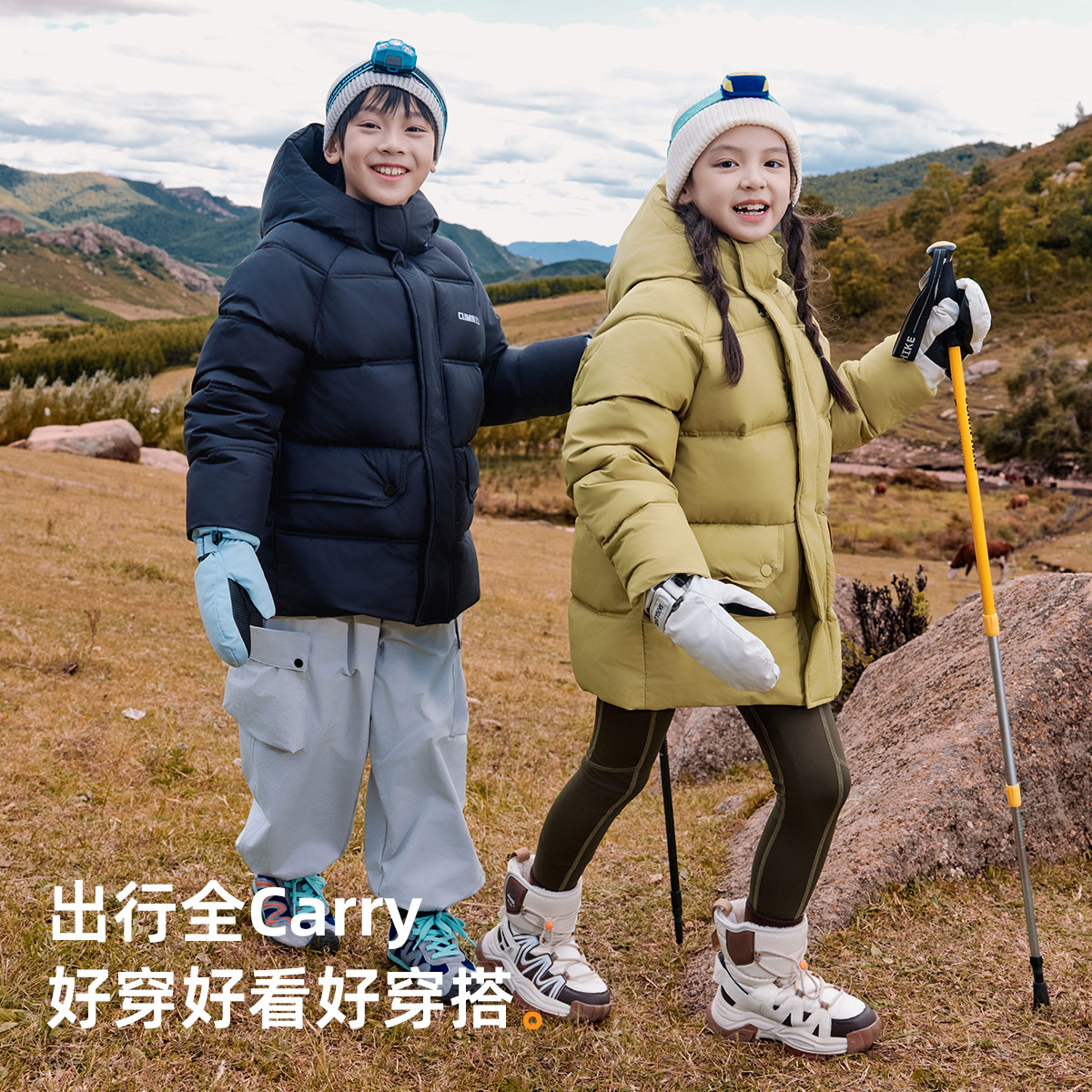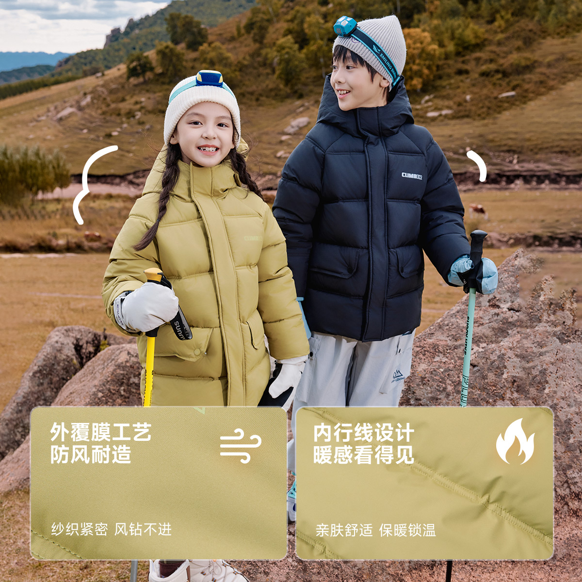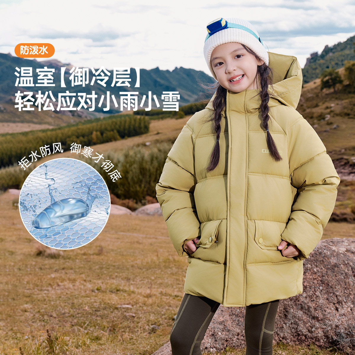 ebaer儿童中长款防水棉服2025冬装新款男童加厚连帽外套女童户外