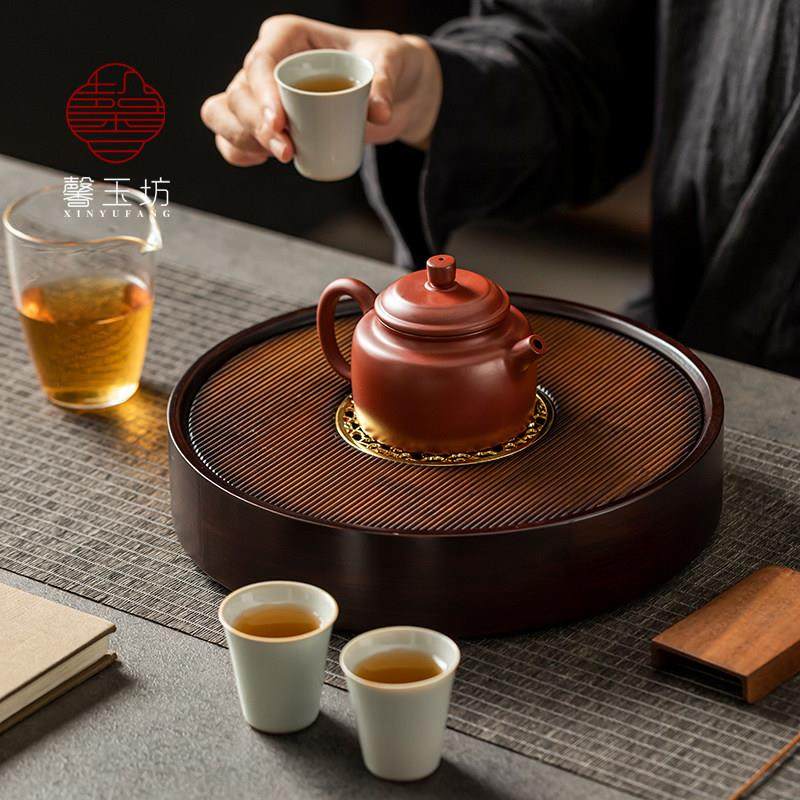竹制储水茶盘新中式家用圆形泡茶台养壶垫功夫茶具茶海小型干泡盘
