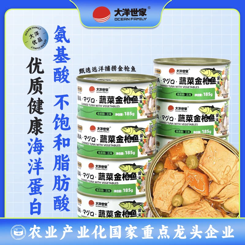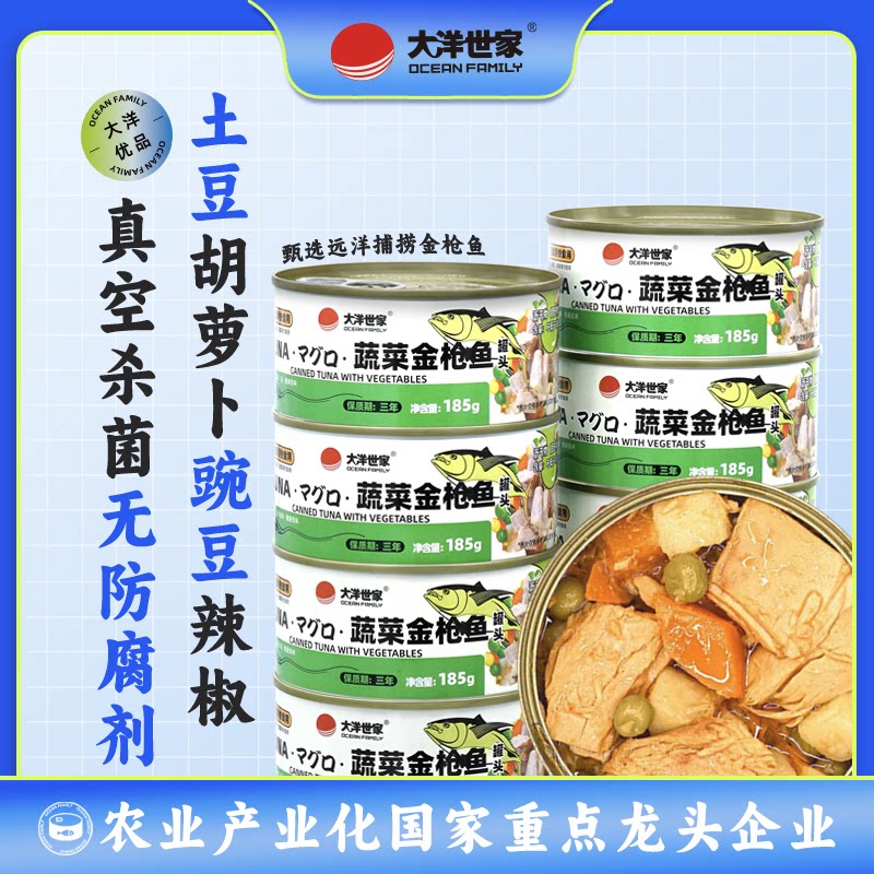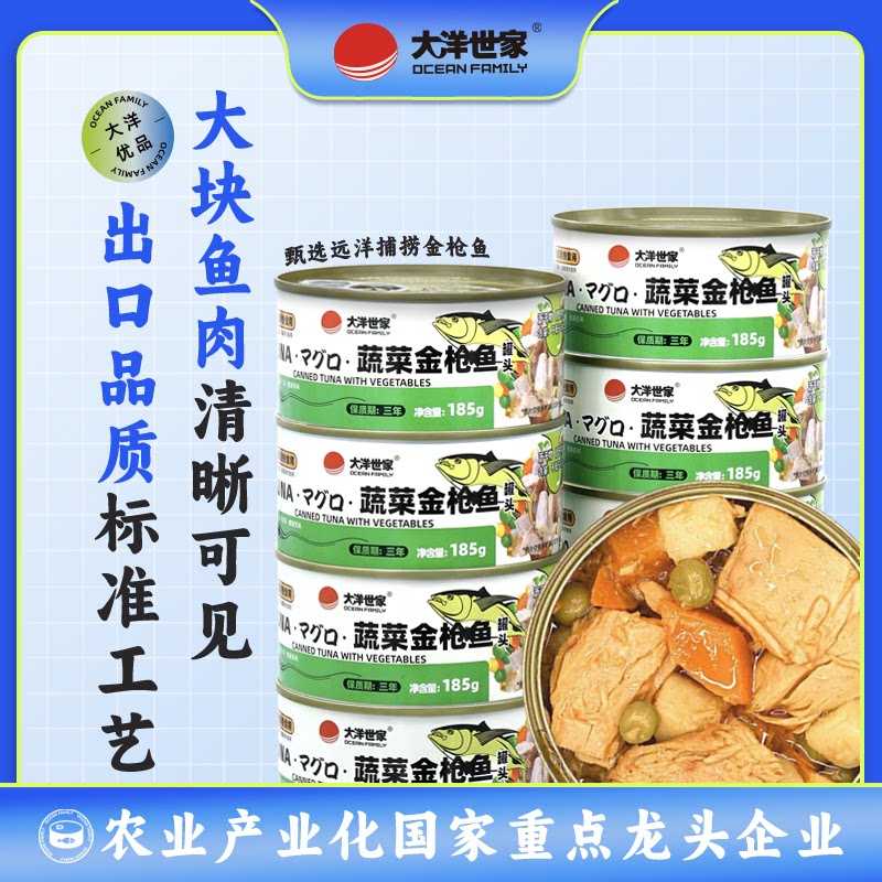 大洋世家蔬菜金枪鱼罐头185g罐装即食下饭菜零食熟食鲜香鱼肉