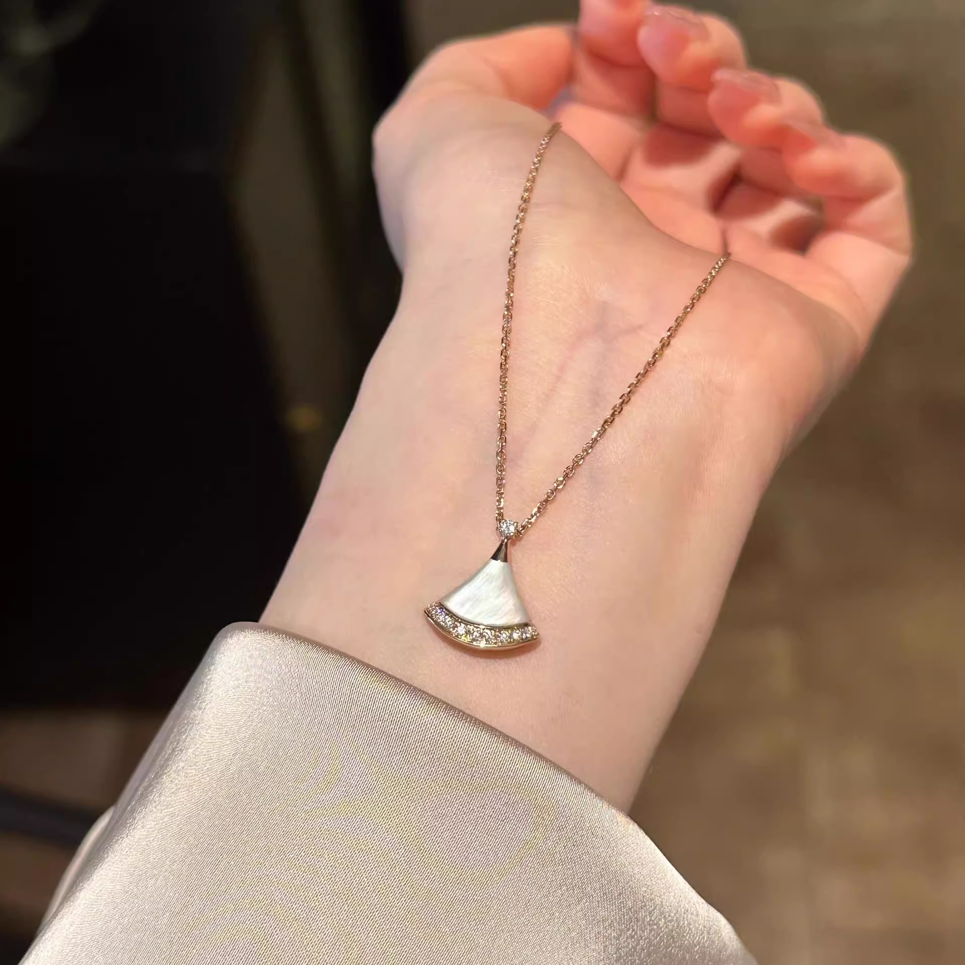 18K金项链玫瑰金小裙子微镶钻石吊坠锁骨链送女友情人节生日礼物