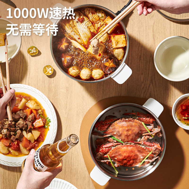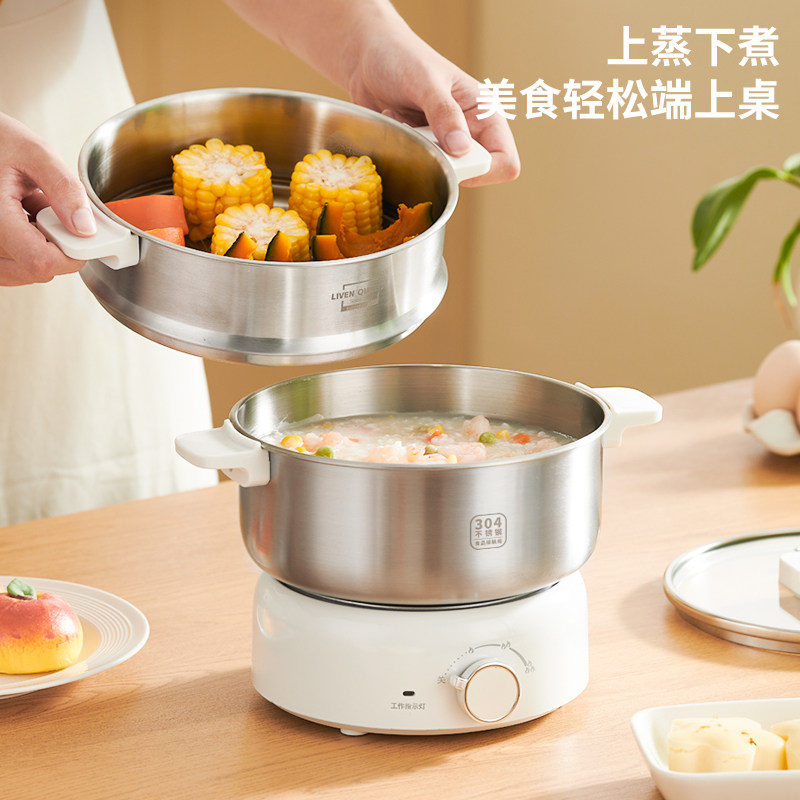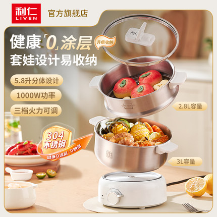 利仁电火锅304不锈钢电煮锅分体式小电锅小型3升小锅电蒸锅带蒸笼