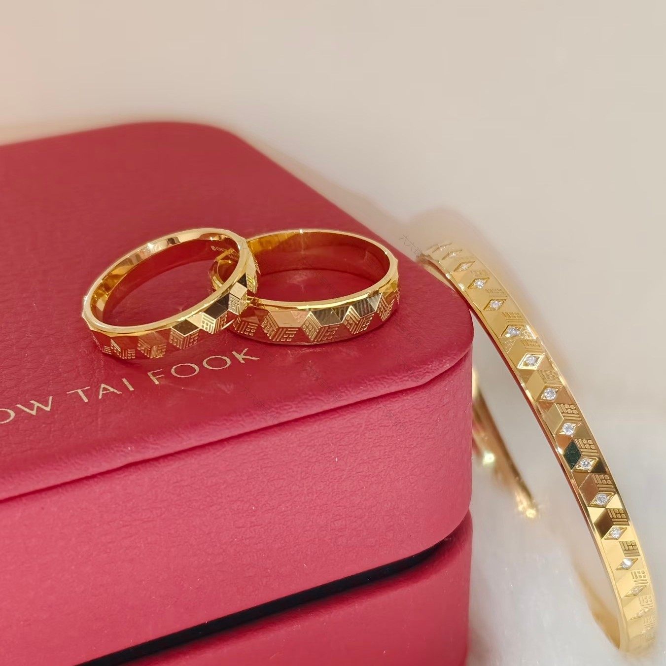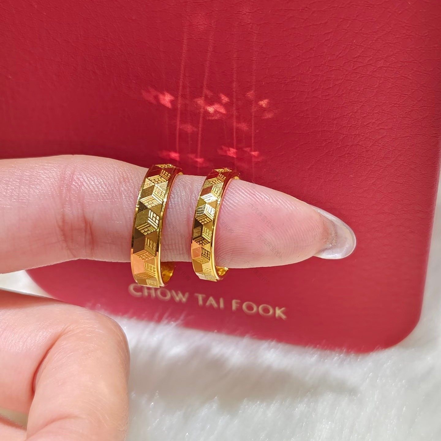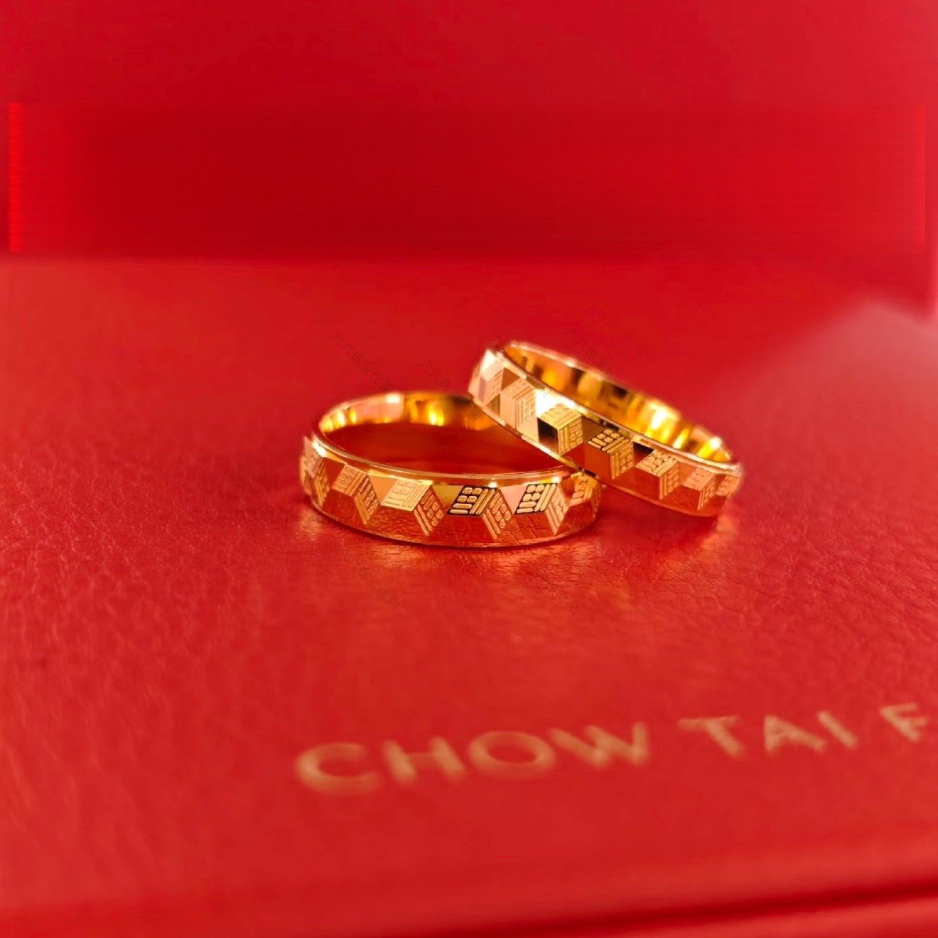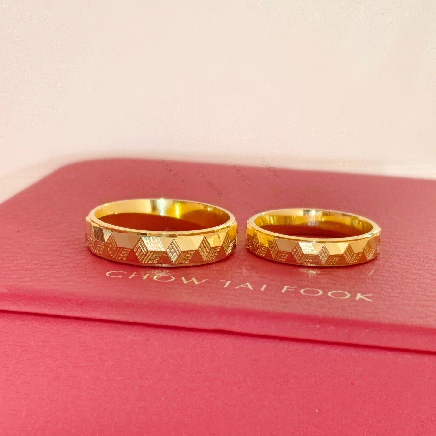 周大福代购 传福系列黄金立体福字戒指情侣足金对戒R39186-39187