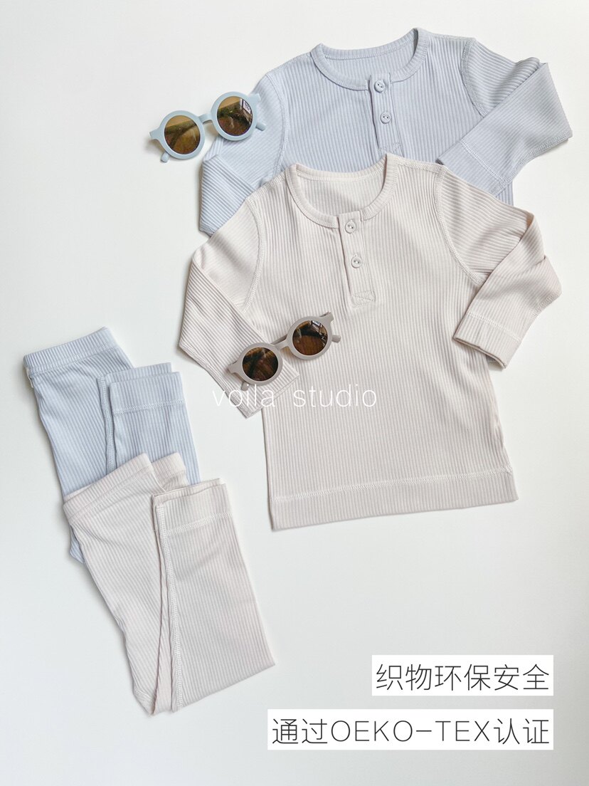 莫代尔棉坑条长袖长裤分体套装无骨家居服内衣内搭ins秋衣秋裤mar
