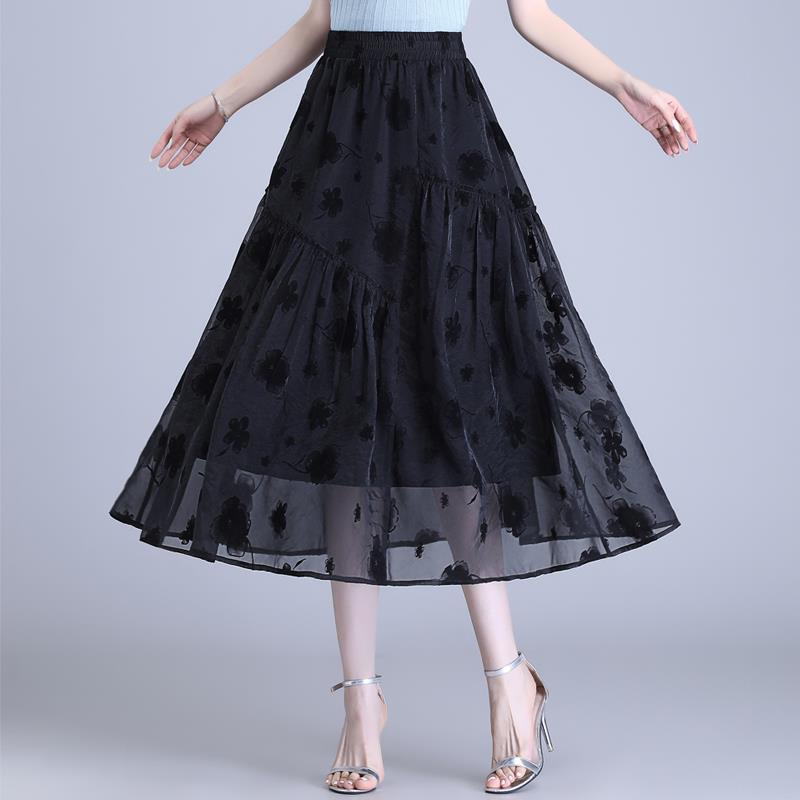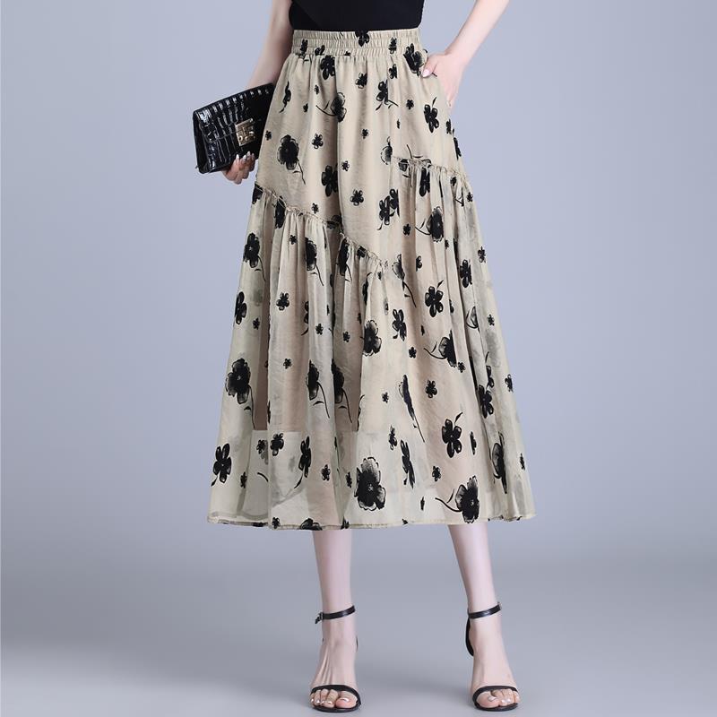 中长款百褶A字裙女2025春夏季新款中年妈妈小个子半身裙碎花裙子