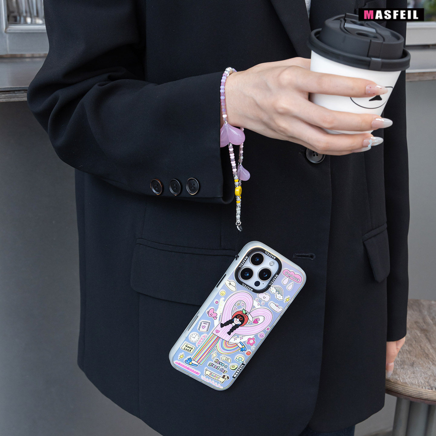MASFEIL × 笑脸粉爱心手机挂链挂绳短款挂链绳子适用苹果17手机壳配件包包挂件挂饰网红防丢简约女高级感