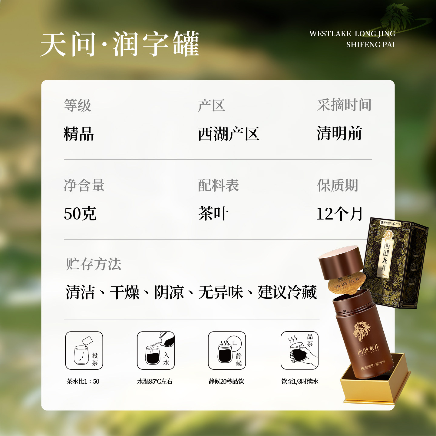 2026新茶预售狮峰牌正宗明前西湖龙井茶叶精品润字春茶绿茶罐50g