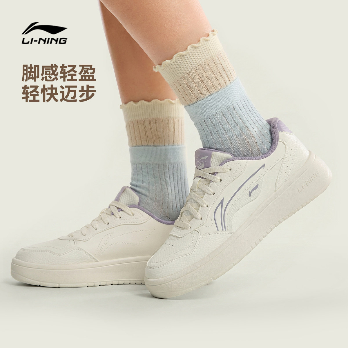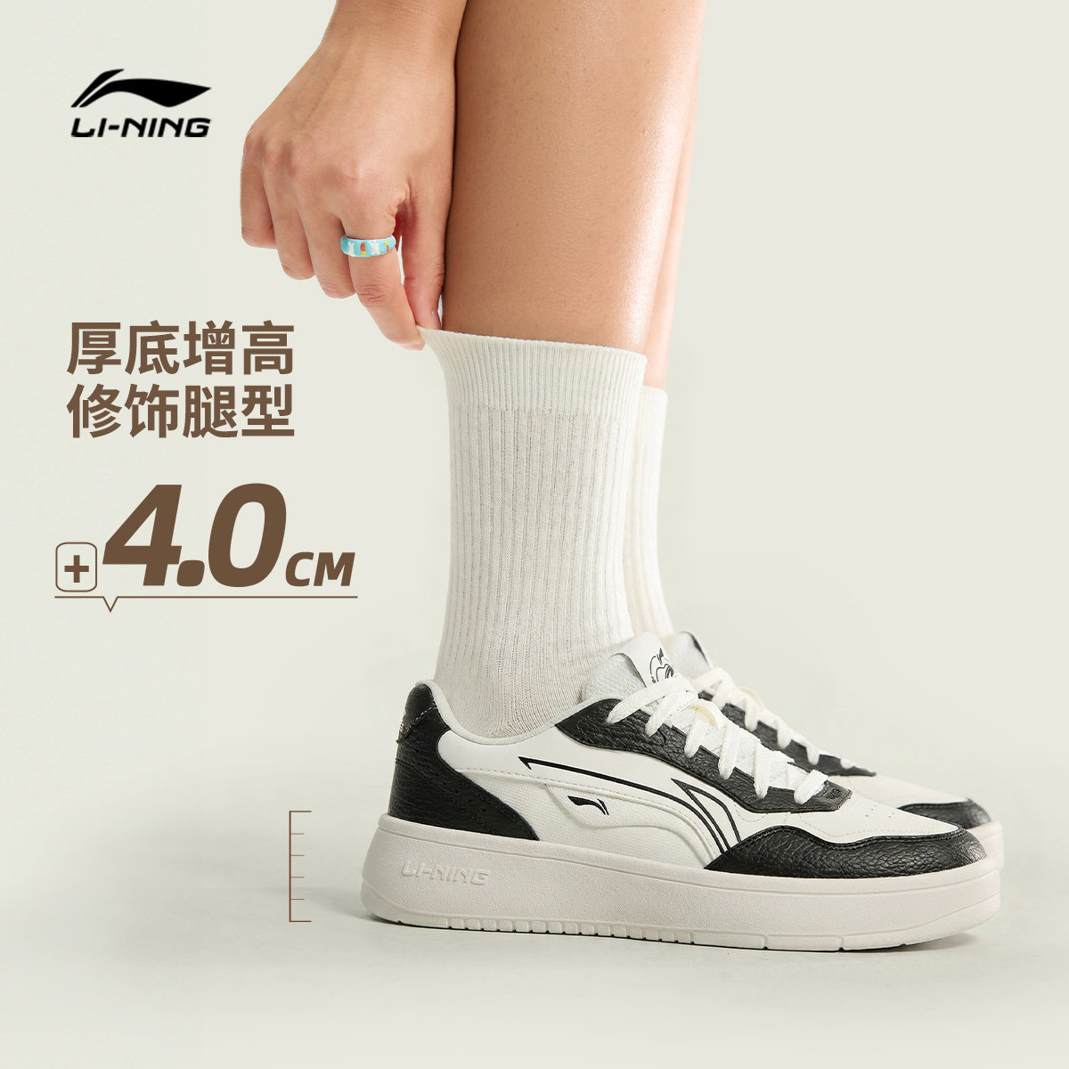 李宁穗岁丨休闲鞋女鞋小白鞋2026新款春季厚底增高百搭运动鞋板鞋