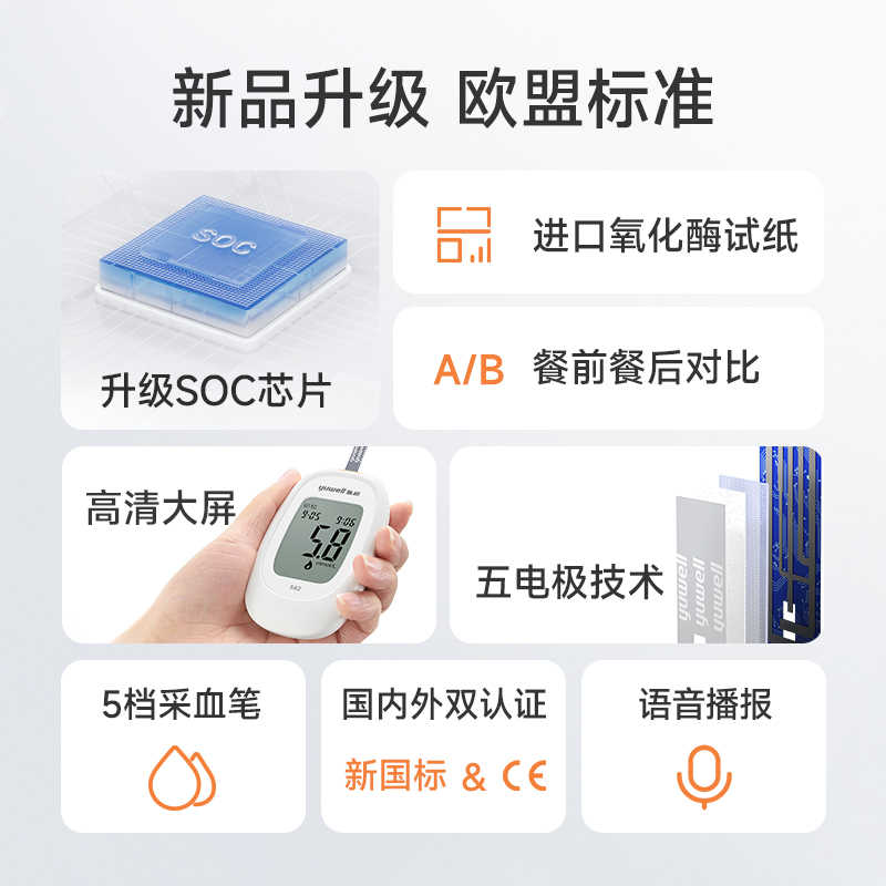 鱼跃血糖试纸582、586、596通用型测糖仪器血糖仪试纸家用免调码