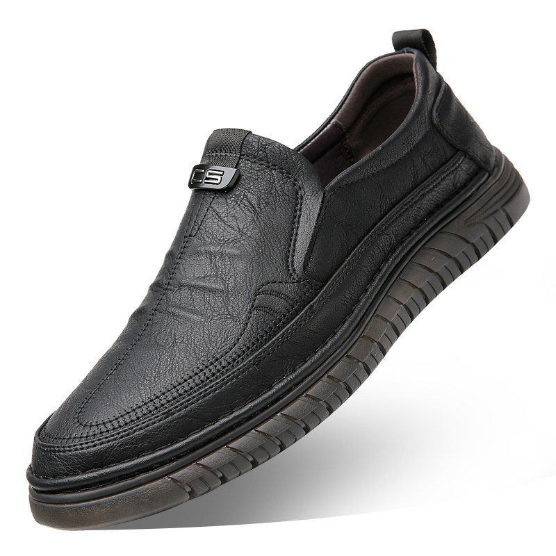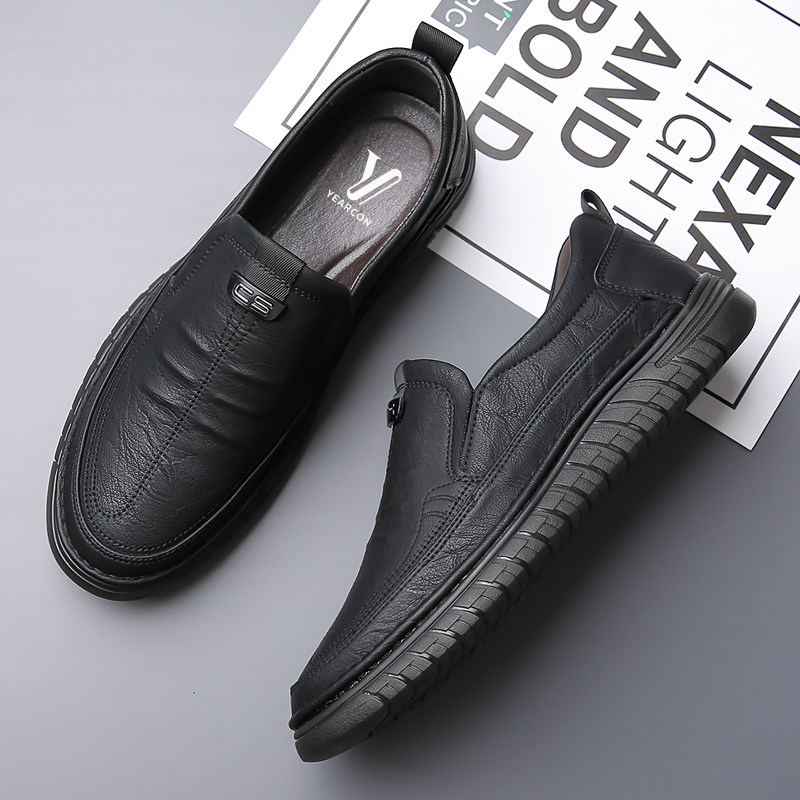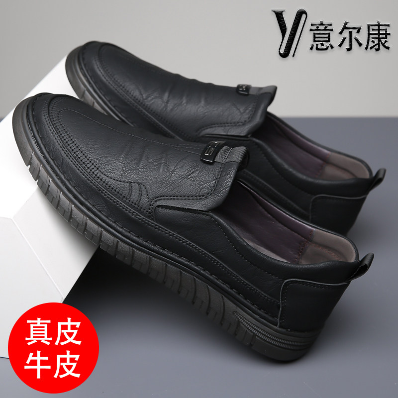意尔康男鞋真皮透气休闲鞋2025秋季新款软底防滑一脚蹬套脚爸爸鞋