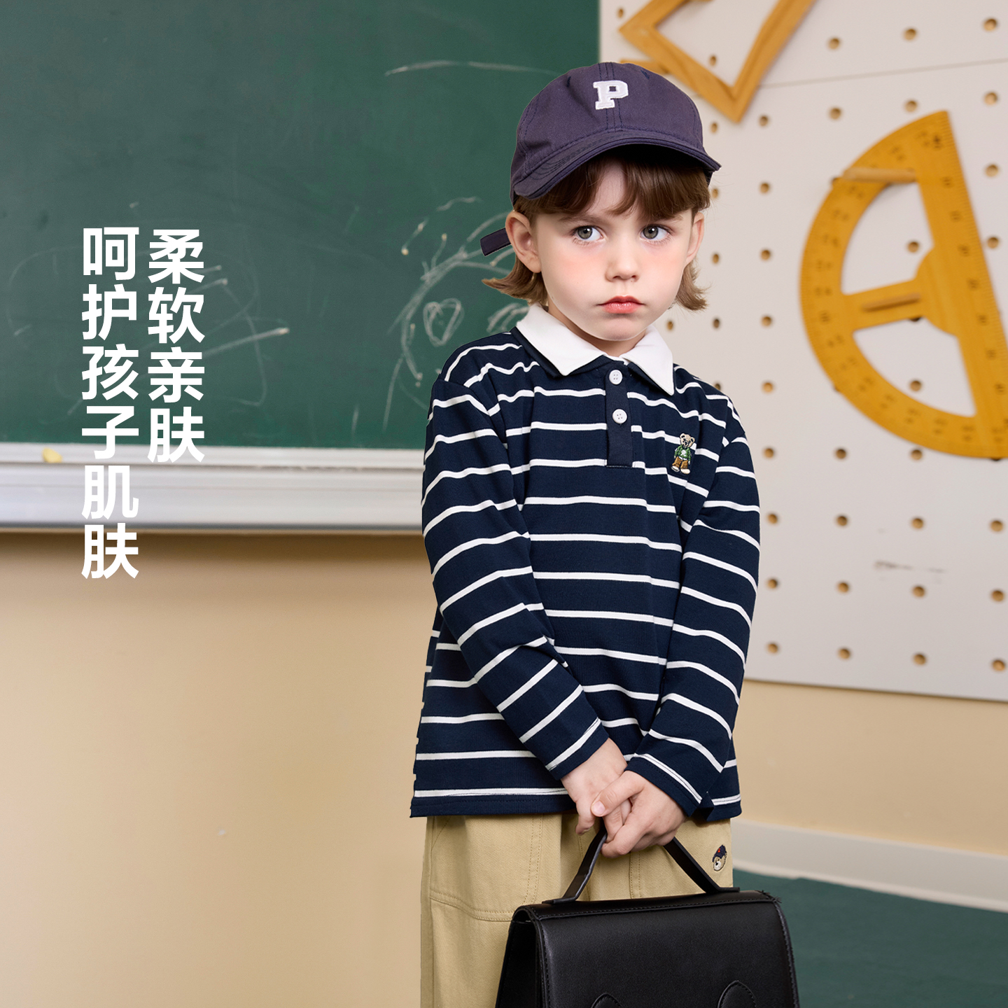 右欧儿童条纹长袖POLO衫