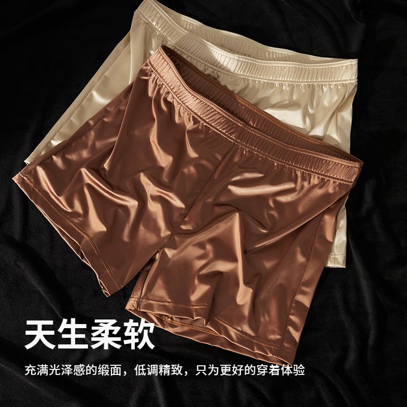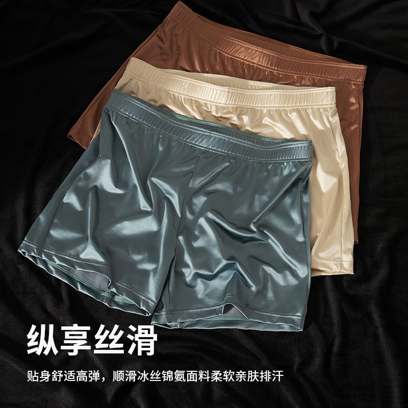 男士内裤阿罗裤冰丝缎面轻奢居家休闲四角裤丝滑透气平角短裤头男