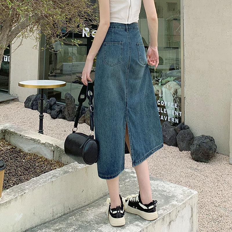 小个子显瘦包臀裙2025新款a字半裙复古蓝色高腰开叉牛仔半身裙女