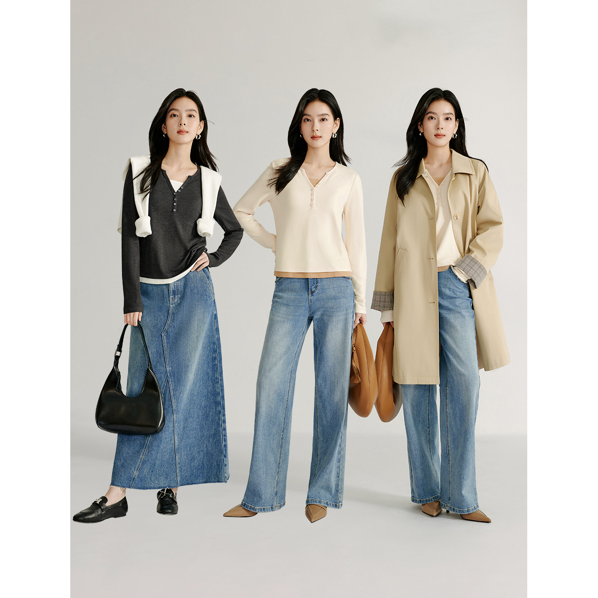 【商场同款】茵曼假两件撞色领T恤2025春季女装新款长袖修身上衣