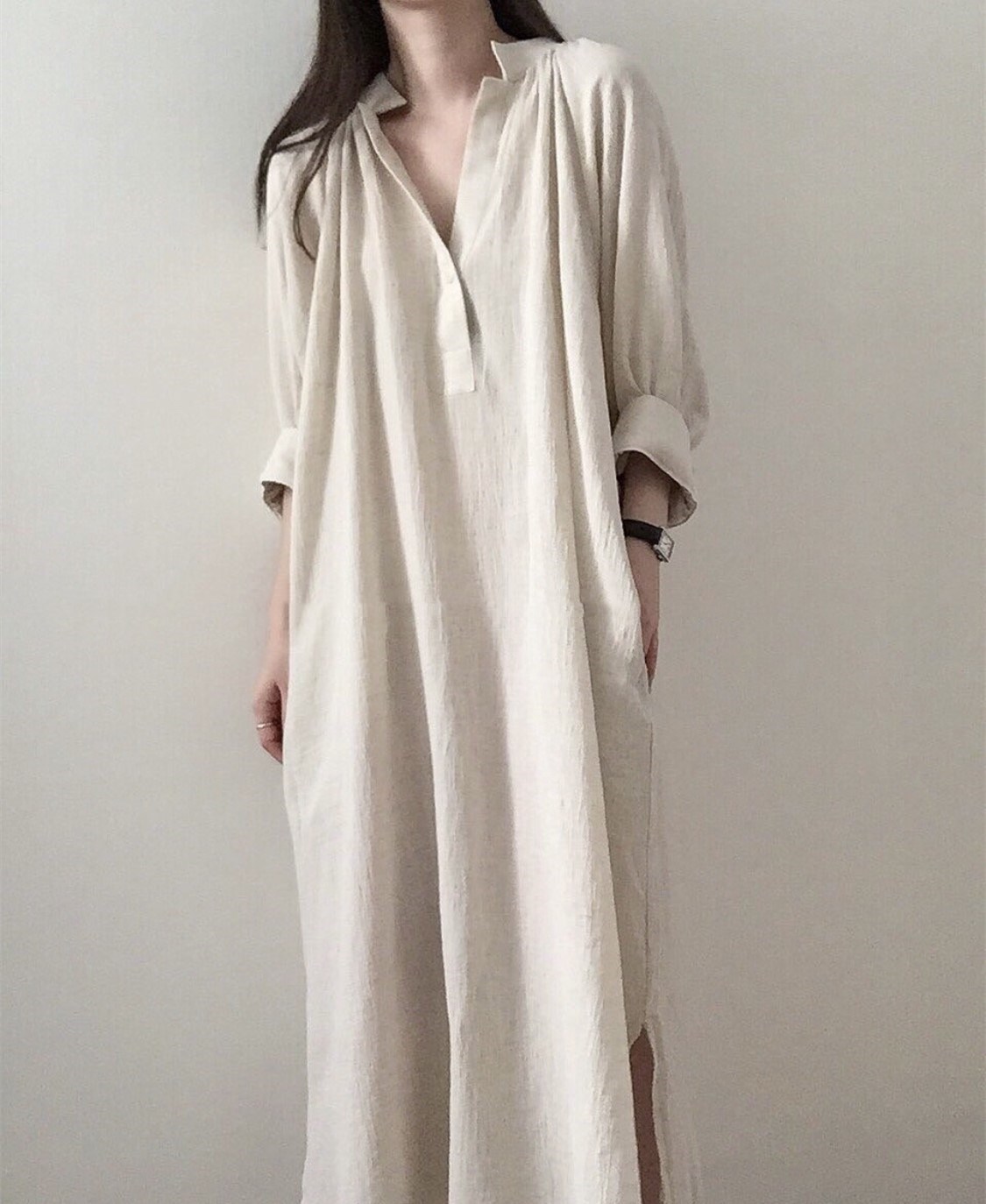 2025新款女秋设计感小众时尚洋气胖MM大码衬衫棉麻苎麻长款连衣裙