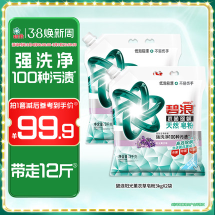 碧浪天然洗衣皂粉12斤高效除螨杀菌抑菌去污薰衣草洗衣粉