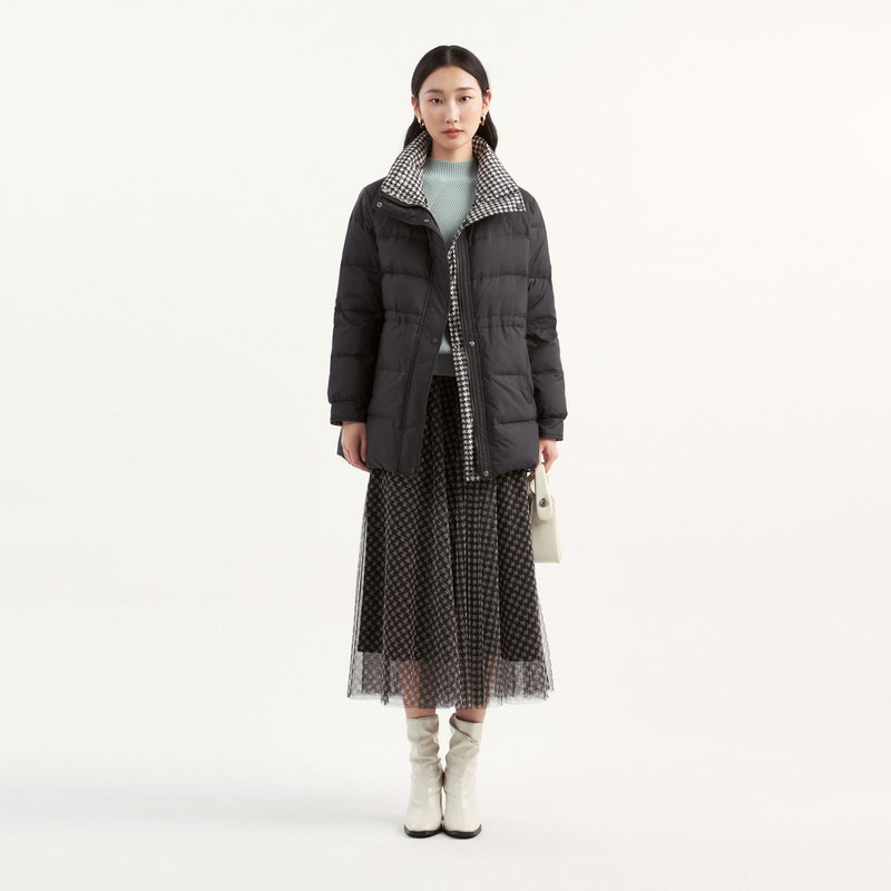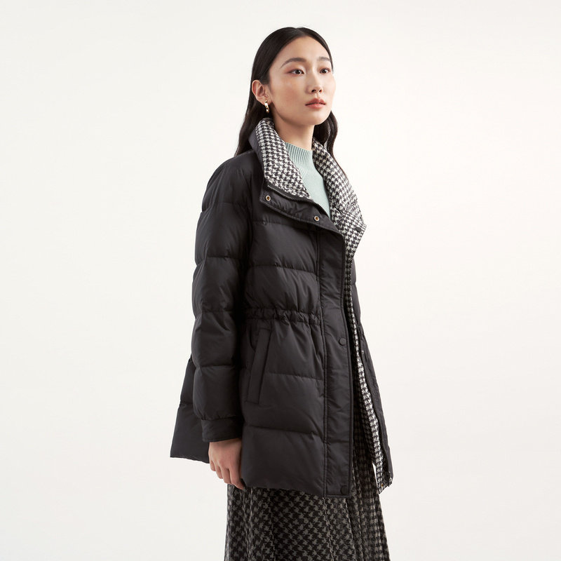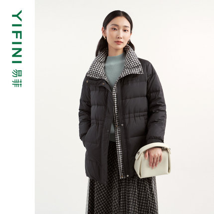 [专柜同款]Yifini/易菲两面穿白鹅绒千鸟格保暖宽松羽绒服女冬
