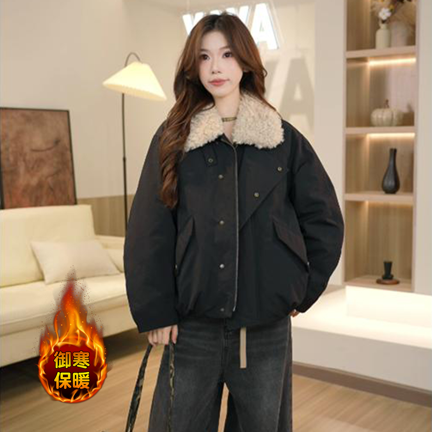 时尚休闲羽绒棉服外套女士冬季新款宽松韩版洋气减龄加厚保暖棉衣