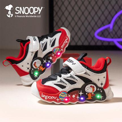 史努比闪灯童鞋春秋新款儿童运动鞋男女童时尚鞋中小童软底跑步鞋