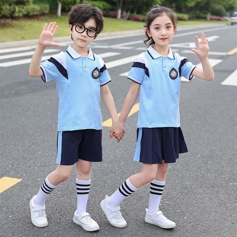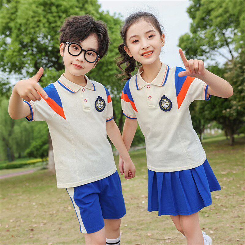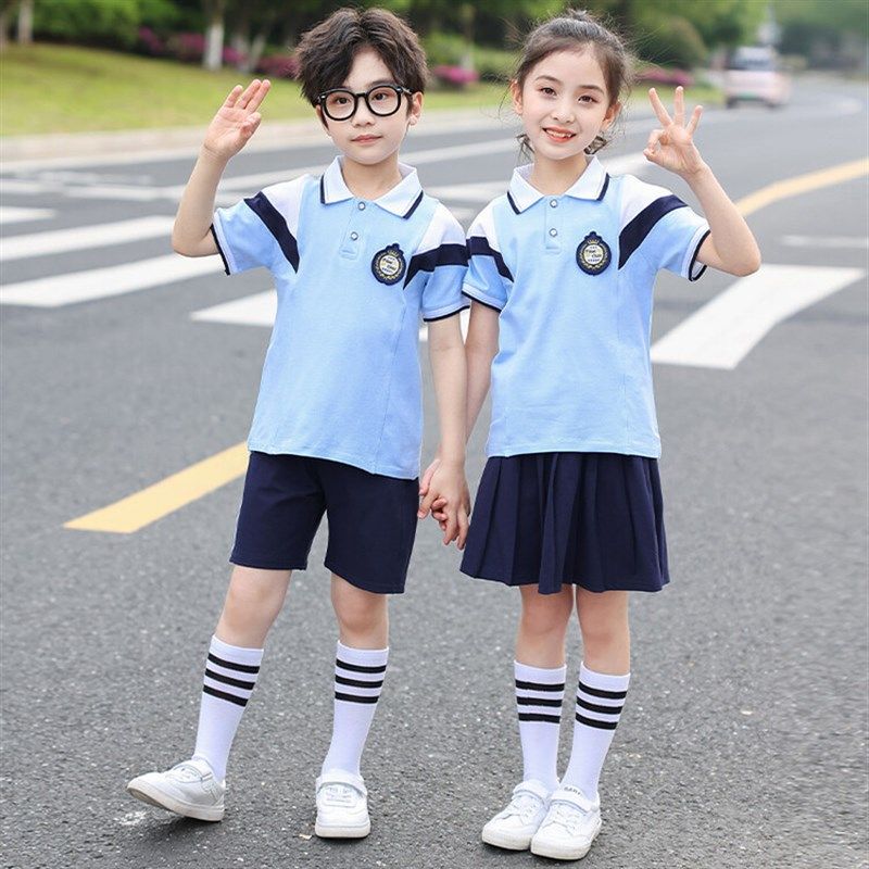 杏色夏季小学生校服班服六一演出服幼儿园园服短袖毕业照套装全棉