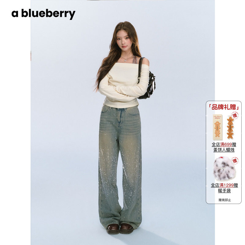 ablueberry碎钻直筒牛仔裤女辣妹