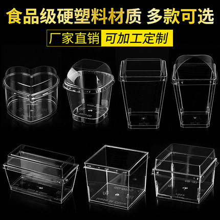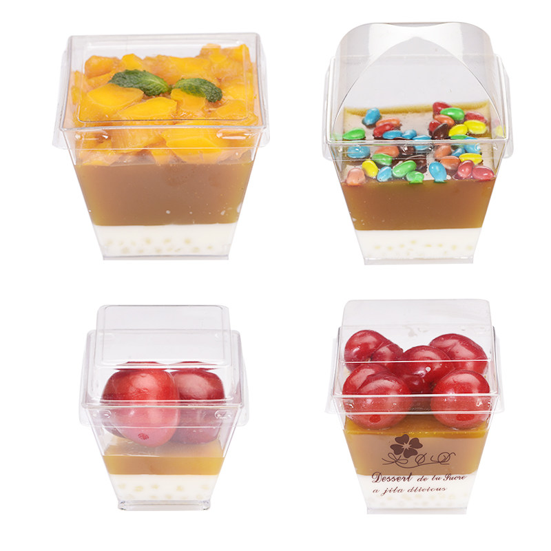 慕斯布丁冰淇淋果冻酸奶甜品硬塑料PS一次性杯子方形透明创意带盖