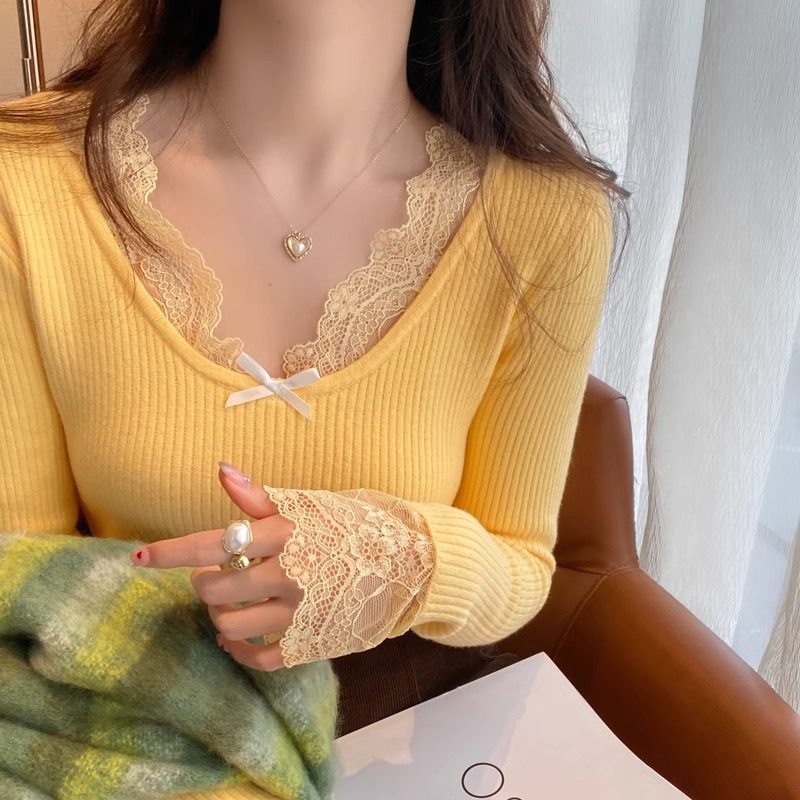 黑色蕾丝毛衣女内搭加绒加厚2025秋冬新款白色针织打底衫保暖上衣