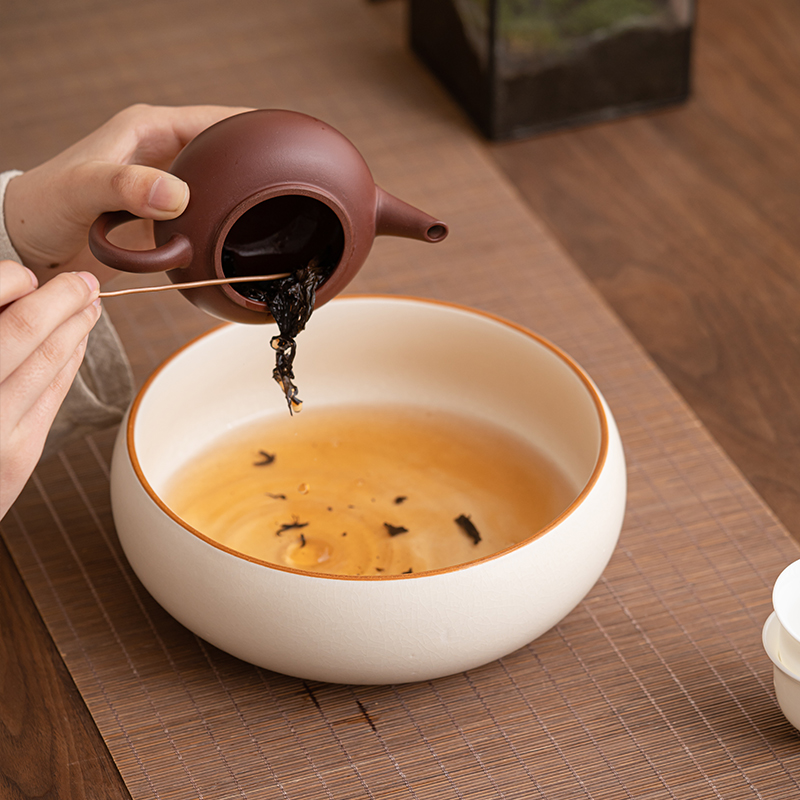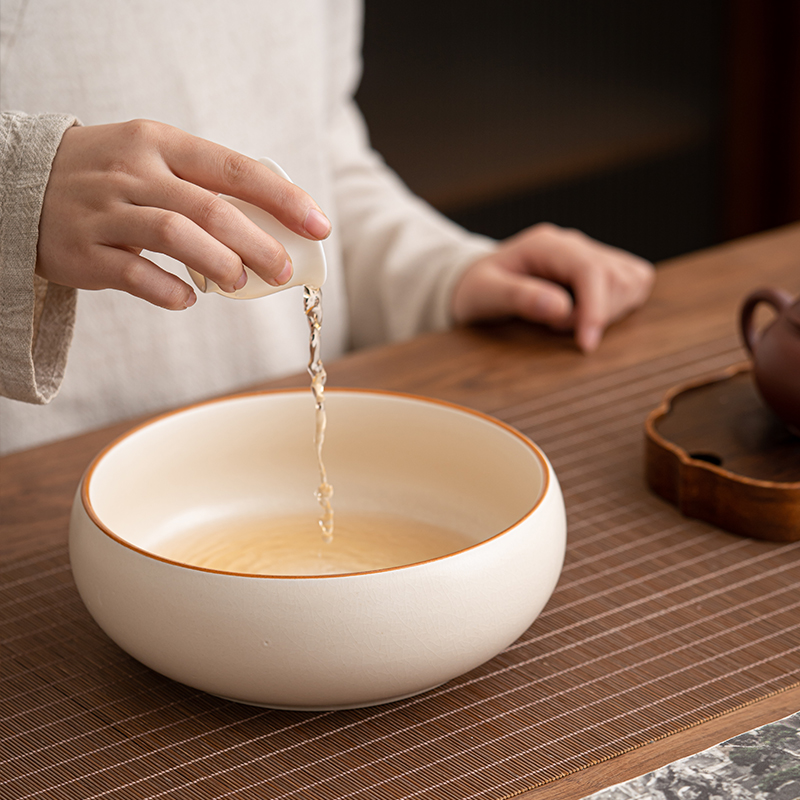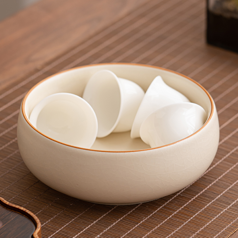 豆黄汝窑茶洗家用陶瓷开片水盂洗茶具神器功夫茶具配件茶道零配