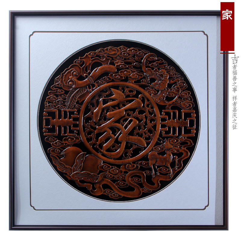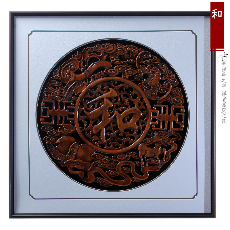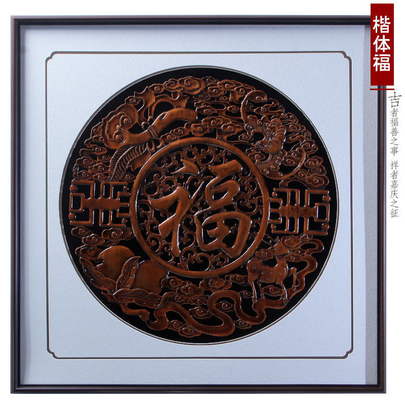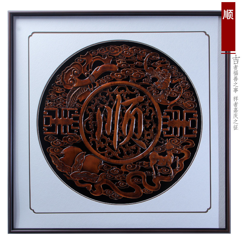 新中式东阳木雕挂画玄关客厅背景墙仿古实木雕刻装饰壁挂家和福顺