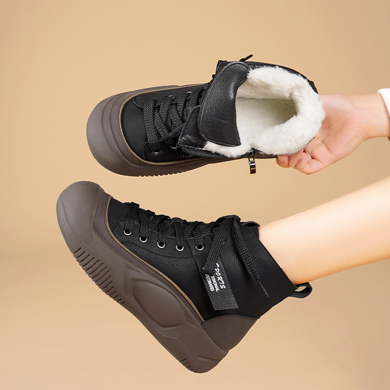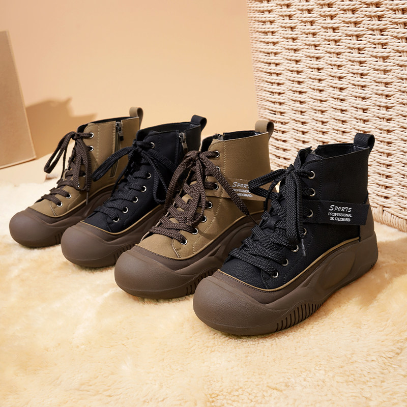 意尔康女鞋韩版厚底马丁靴女靴冬季加绒保暖高帮短靴羊毛工装棉鞋