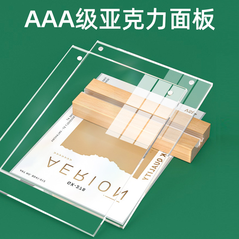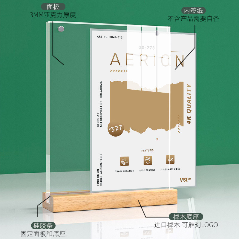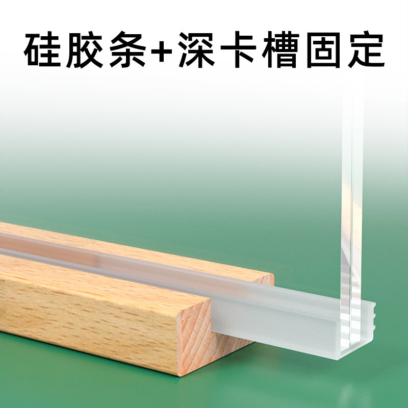 A4亚克力台卡架榉木展示牌立牌桌牌抽拉底座台卡签桌面展示台牌双面透明立牌餐桌菜单价目广告牌价格牌展示牌