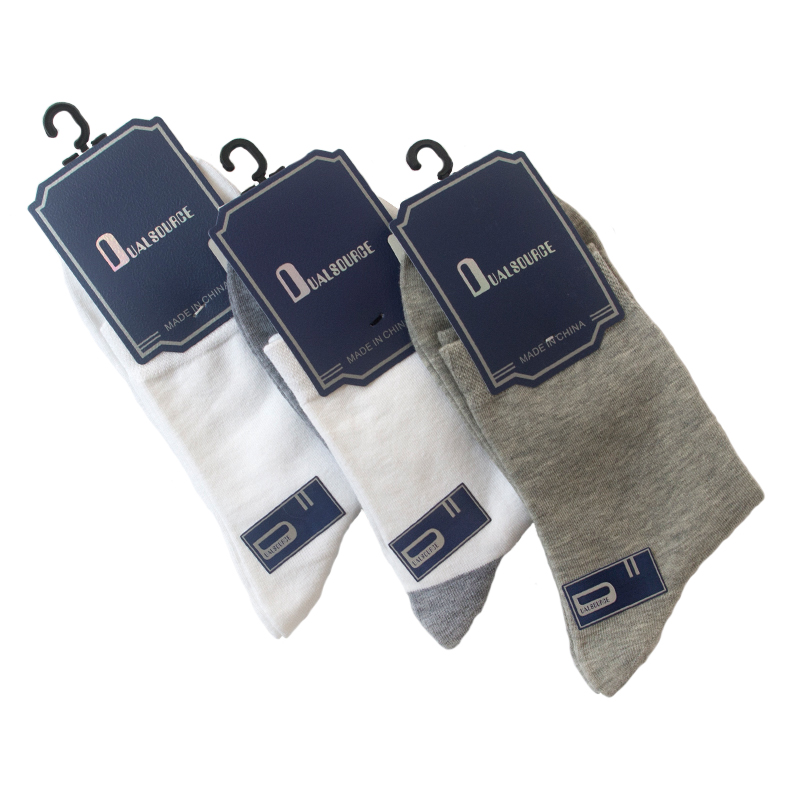 双源袜子男全棉中筒秋冬季厚款保暖纯棉黑白灰商务休闲六双装包邮