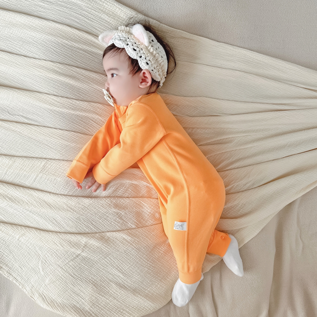 宝宝春秋无骨睡衣婴儿连体衣服冬季纯棉贴身打底内衣纯色哈衣爬服