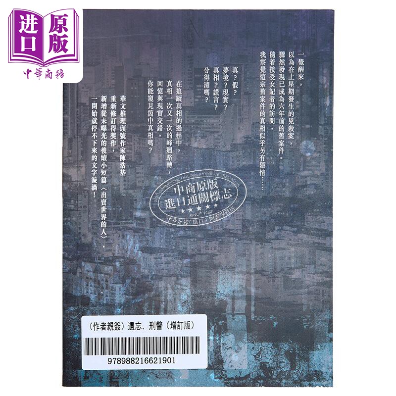 作者亲签 遗忘 刑警 增订版 港台原版 陈浩基 香港皇冠出版【中商原版】
