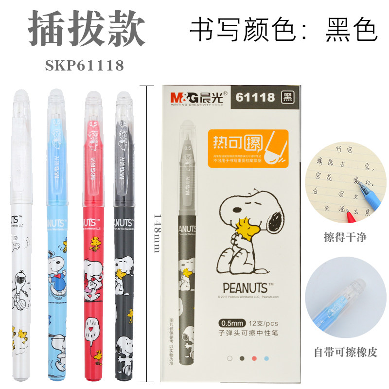 晨光文具史努比可擦中性笔小学生3-5年级热可擦笔摩易擦笔0.5mm可爱卡通晶蓝色正品魔力擦笔61118