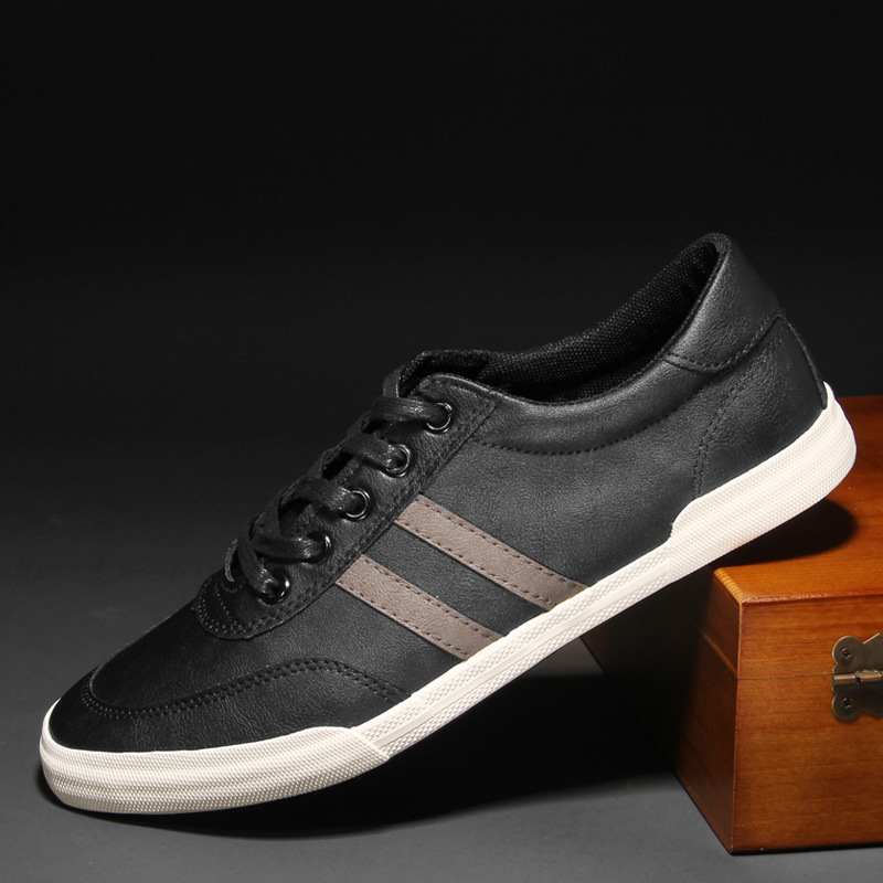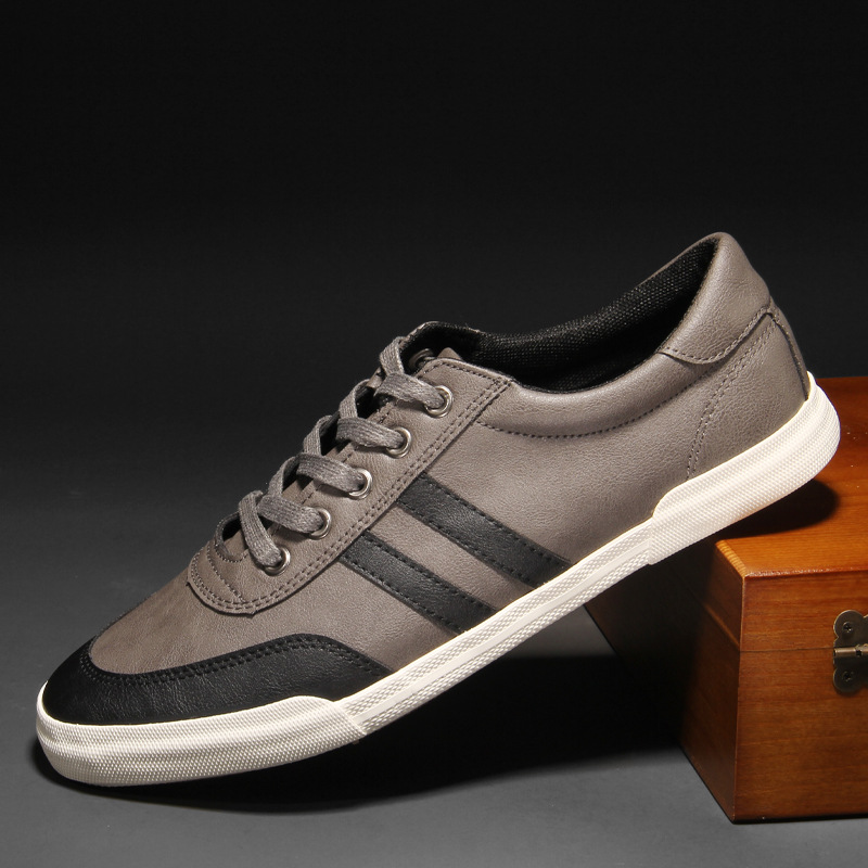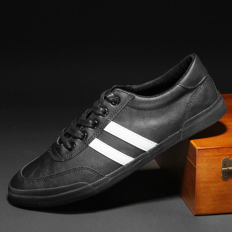 春秋男士新款皮鞋百搭低帮拼色系带潮鞋轻便软底时尚懒人休闲鞋男
