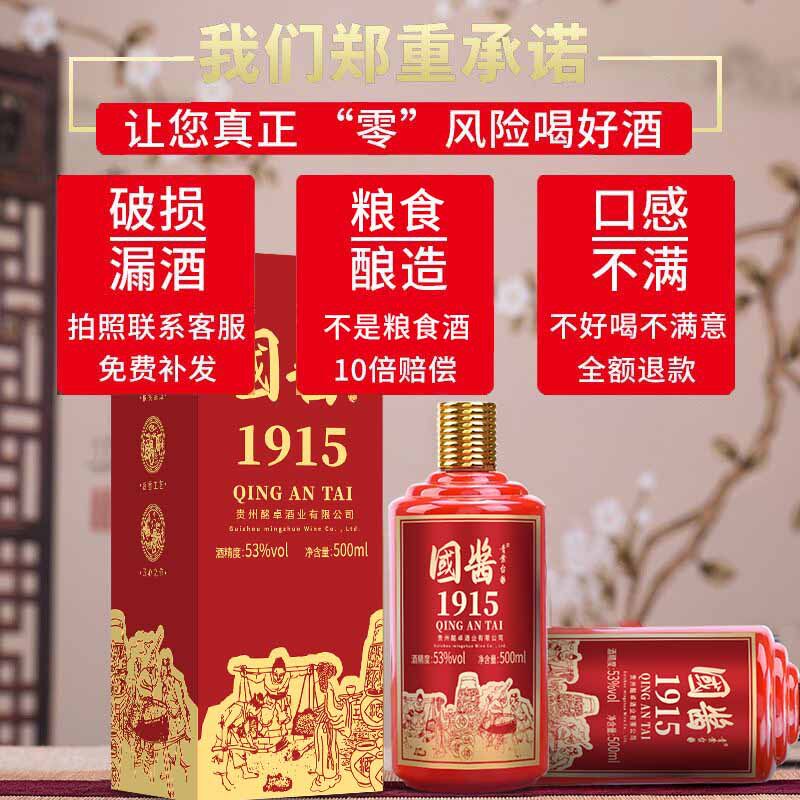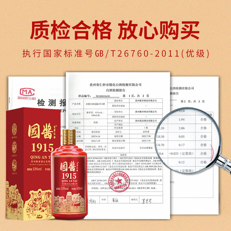 纯粮食白酒礼盒装坤沙国酱酒1915贵州酱香型53度老酒婚宴酒礼袋