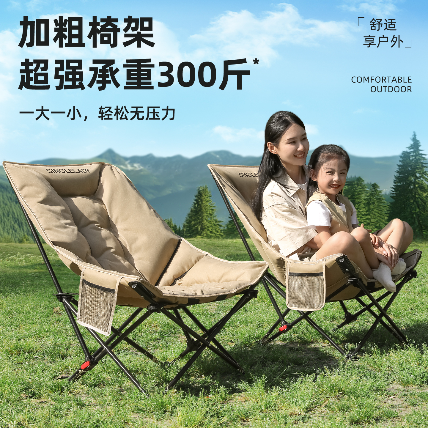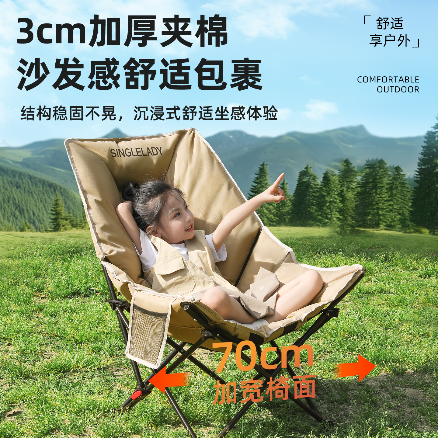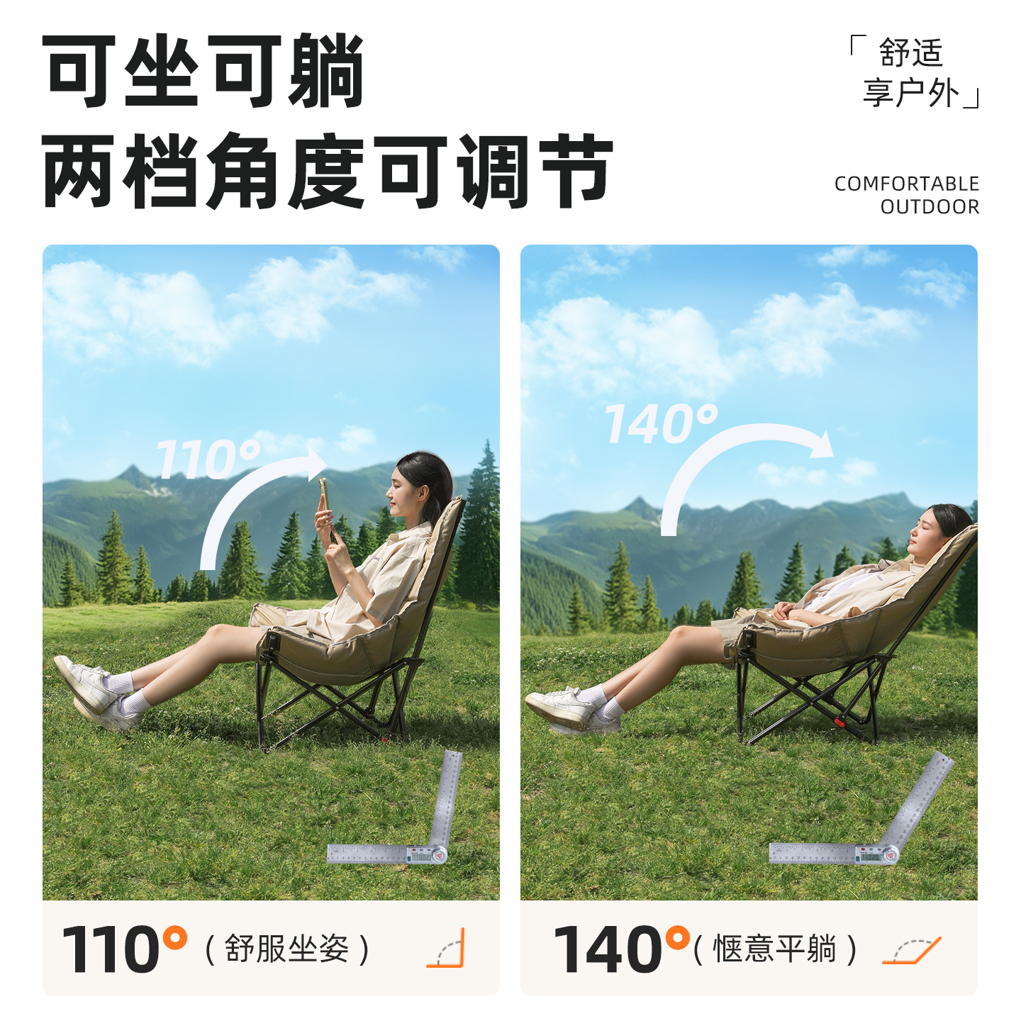 折叠躺椅便携式露营椅子户外高背月亮椅野营午休懒人休闲两用新款