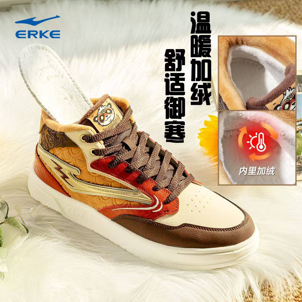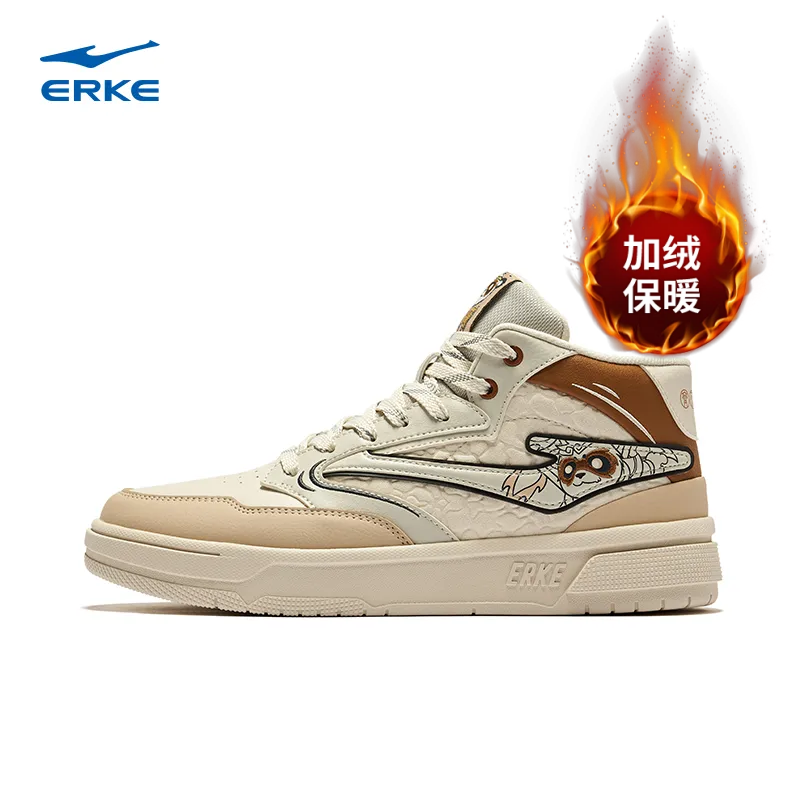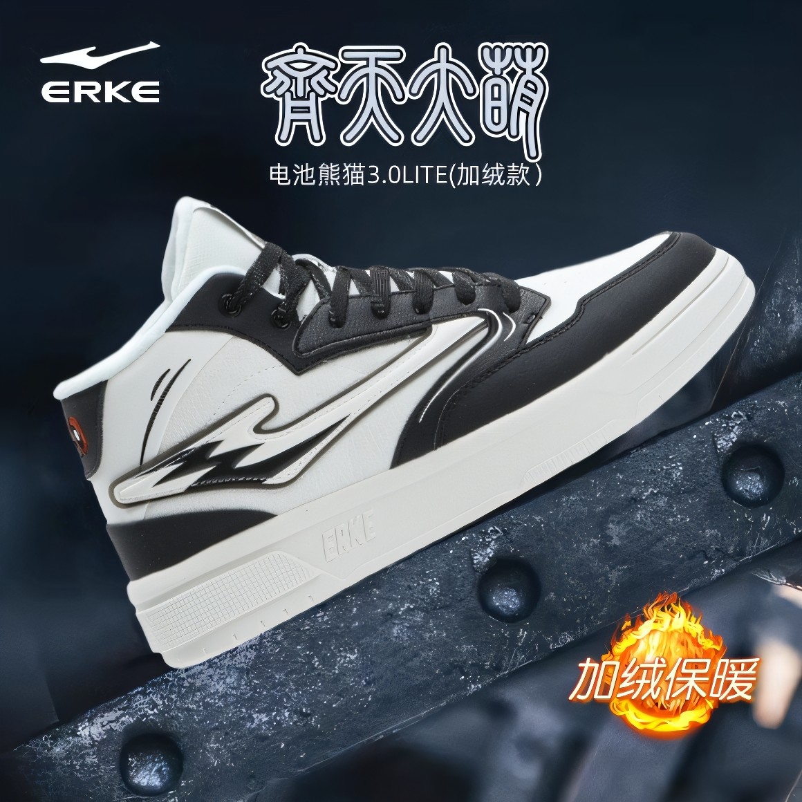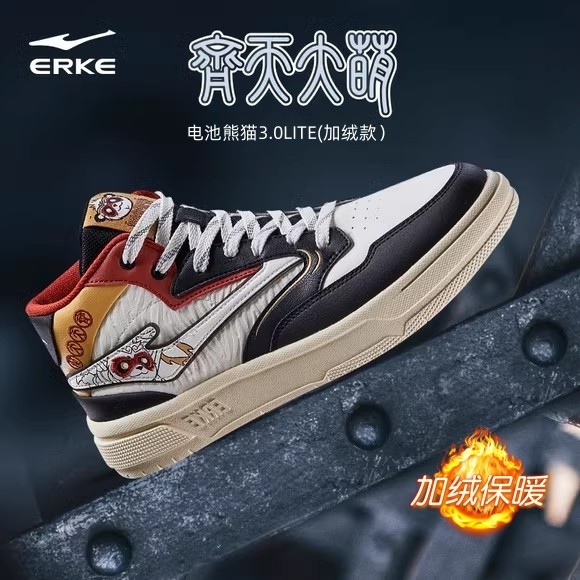 鸿星尔克男鞋电池熊猫高帮板鞋男冬季加绒棉鞋厚底百搭休闲运动鞋