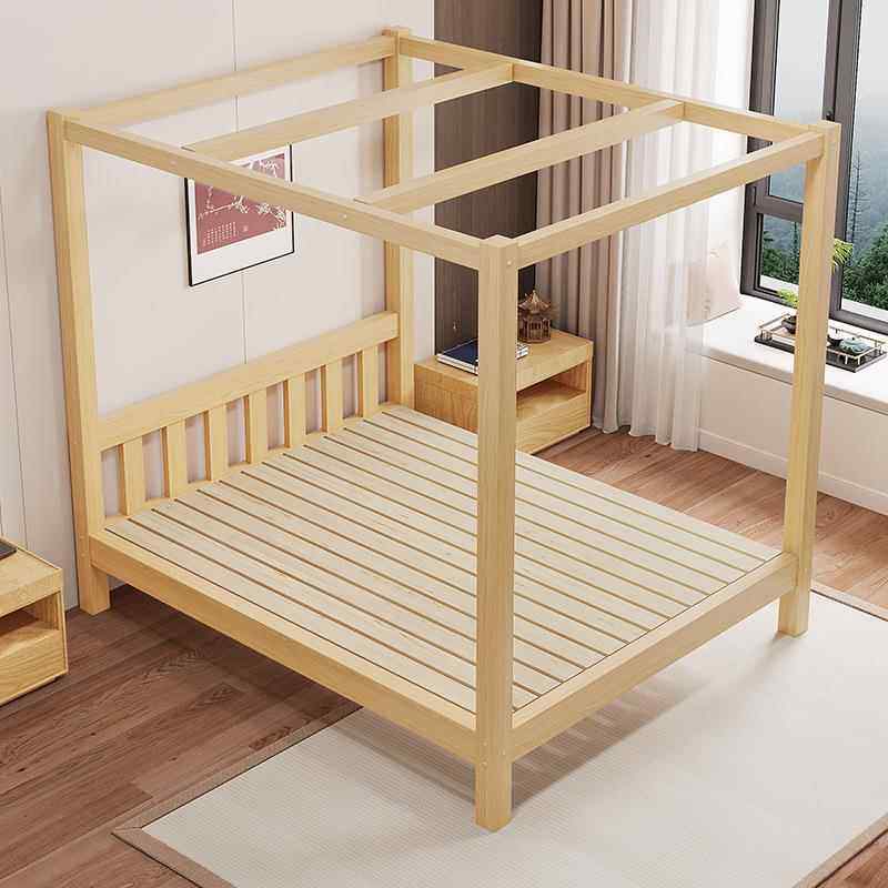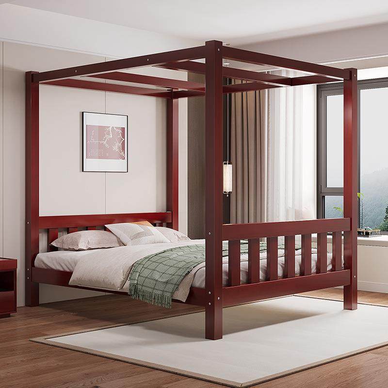 全实木双人床现代简约民宿四柱床1.8米主卧松木 可中式架子床