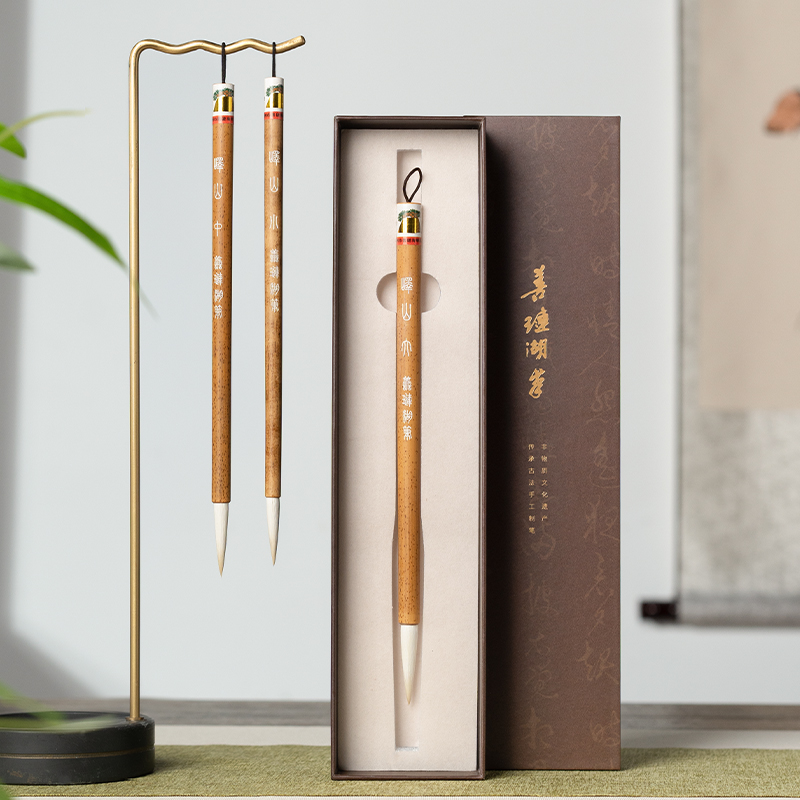 善琏湖笔 峄山 毛笔书法专用专业级纯羊毫细光锋国画白云书法篆书隶书行书草书中楷软笔湖笔礼盒文房四宝