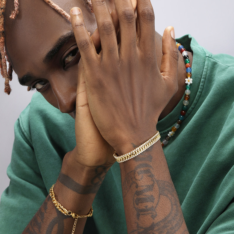 GRGR 14K金色网球手链男女嘻哈欧美潮流网球链tennis不易掉色高街