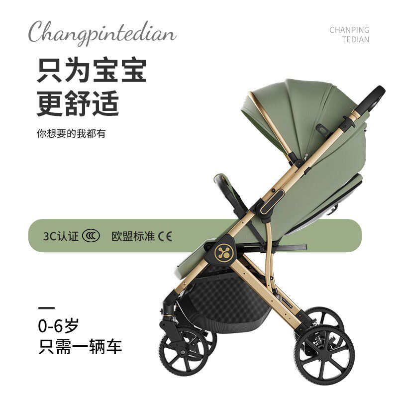 婴儿推车可坐可躺高景观双向一键收车折叠四轮避震新生婴儿手推车